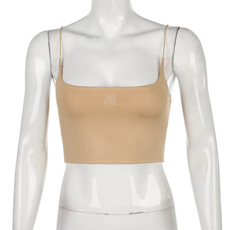 BOOFEENAA весна-лето 2020 новый сексуальный кроп-топ на бретелях-спагетти базовые буквенные вышитые двухслойные майки
