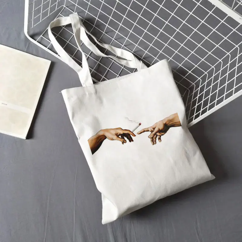Холщовая Сумка Микеланджело в стиле Харадзюку, женская сумка с забавным принтом