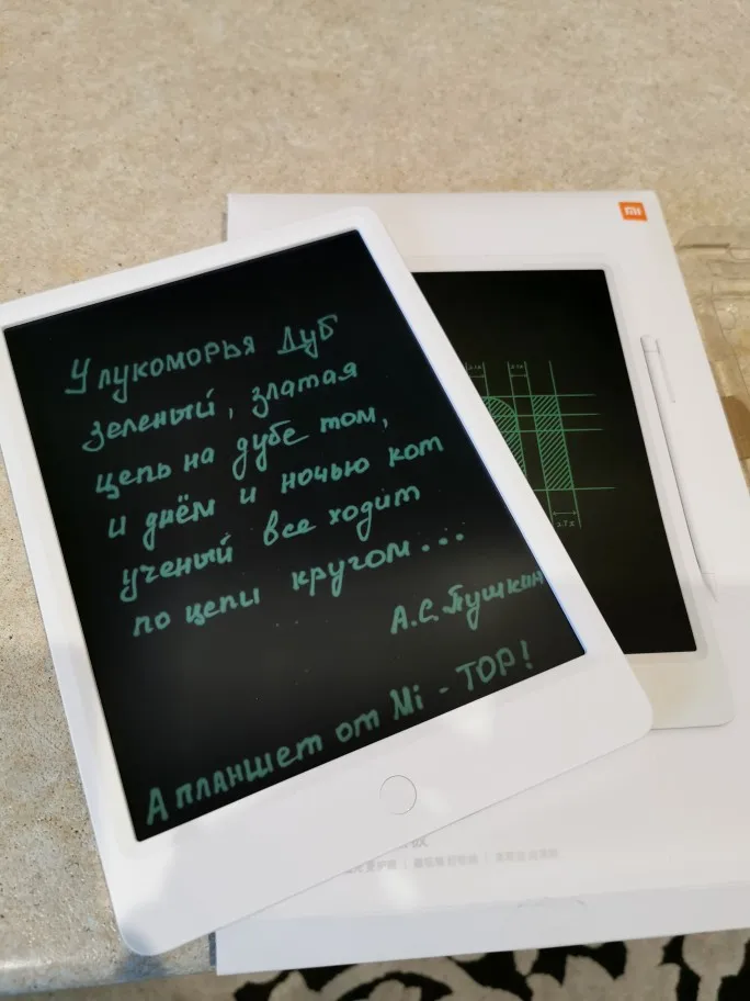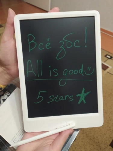 Сяоми вещь дельная. Стилус с магнитом, экран яркий, батарейку легко менять. Инструкция только на китайском, но и так всё понятно. Это 5.