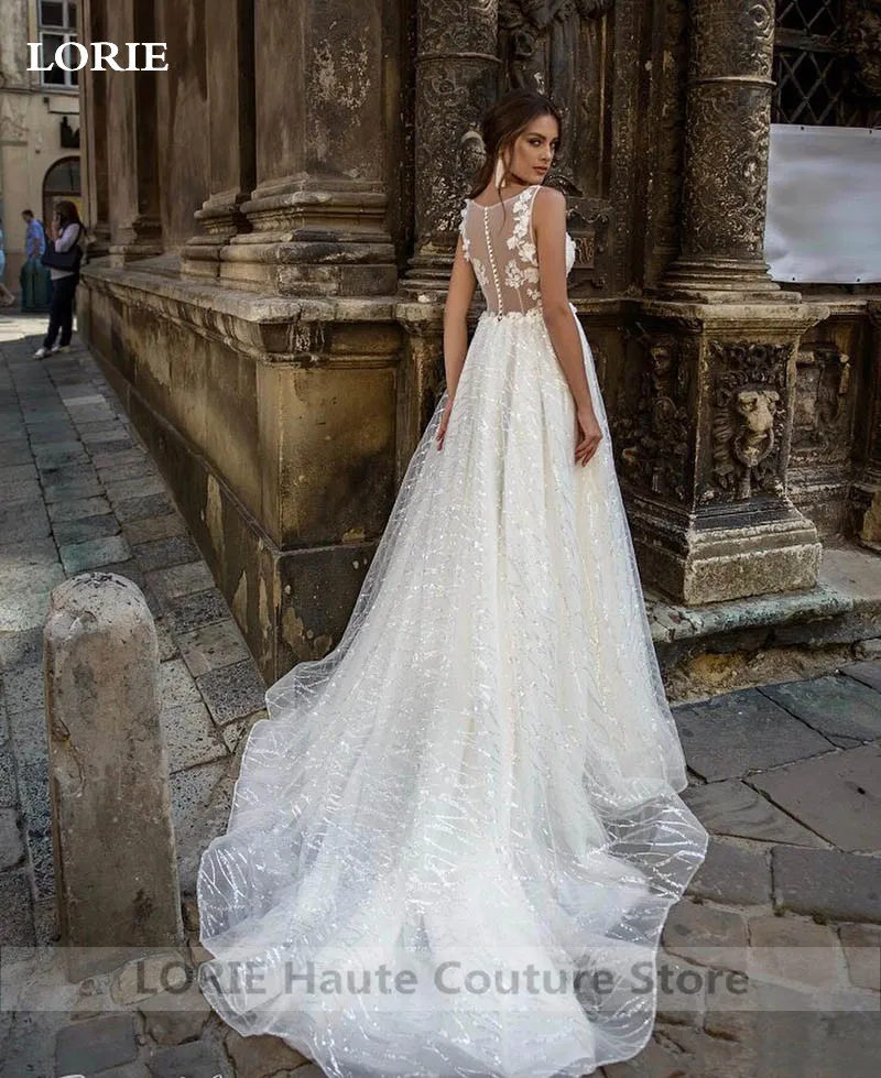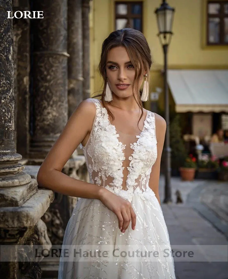 Свадебное платье принцессы LORIE с разрезом по бокам, блестящее сексуальное платье с V-образным вырезом и кружевной аппликацией, свадебные платья