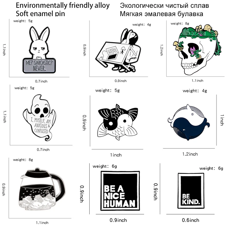 Заколки в виде кролика Инь Янь рыба Призрак череп значки Броши для женщин Забавный Милый кофейник лацкан Эмаль заколка одежда сумка Ювелирные изделия Подарки