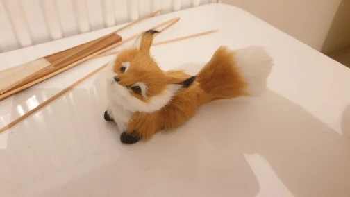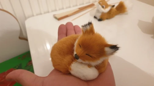 Лисичка отличная. Только шорстка на носике немного отклеилась, сама подклею. Быстрая доставка до Иваново (три недели).