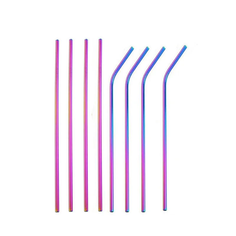 Многоразовые соломинки из нержавеющей стали 1810, многоразовые металлические цветные соломинки с щеткой для очистки, вечерние аксессуары 215mmx6 мм