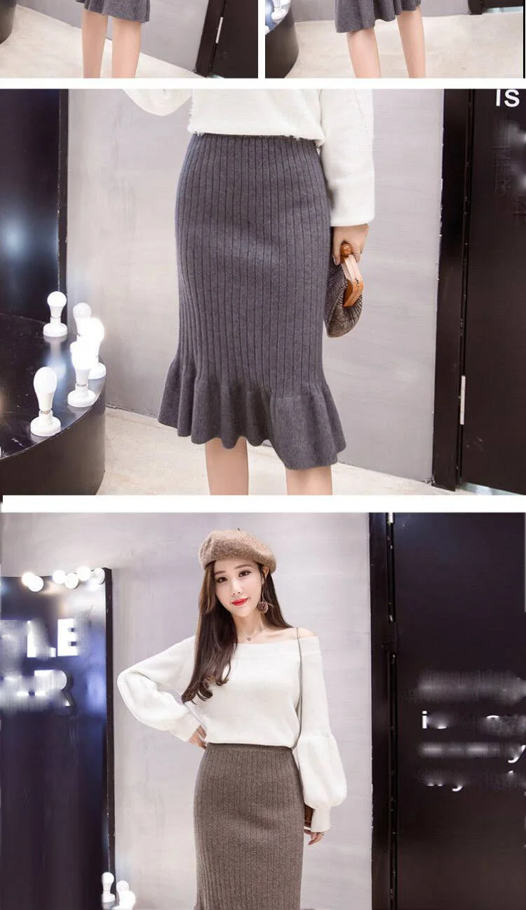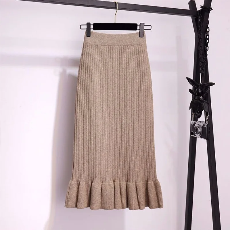 Длинная вязаная юбка-свитер с рюшами, с высокой талией, весна-осень, плиссированные юбки миди