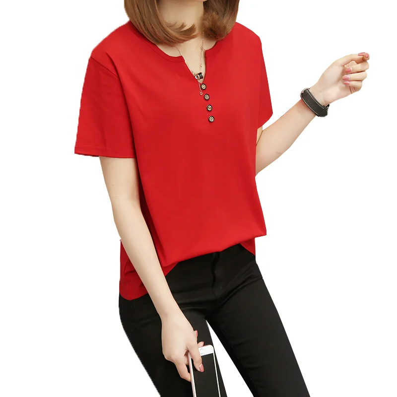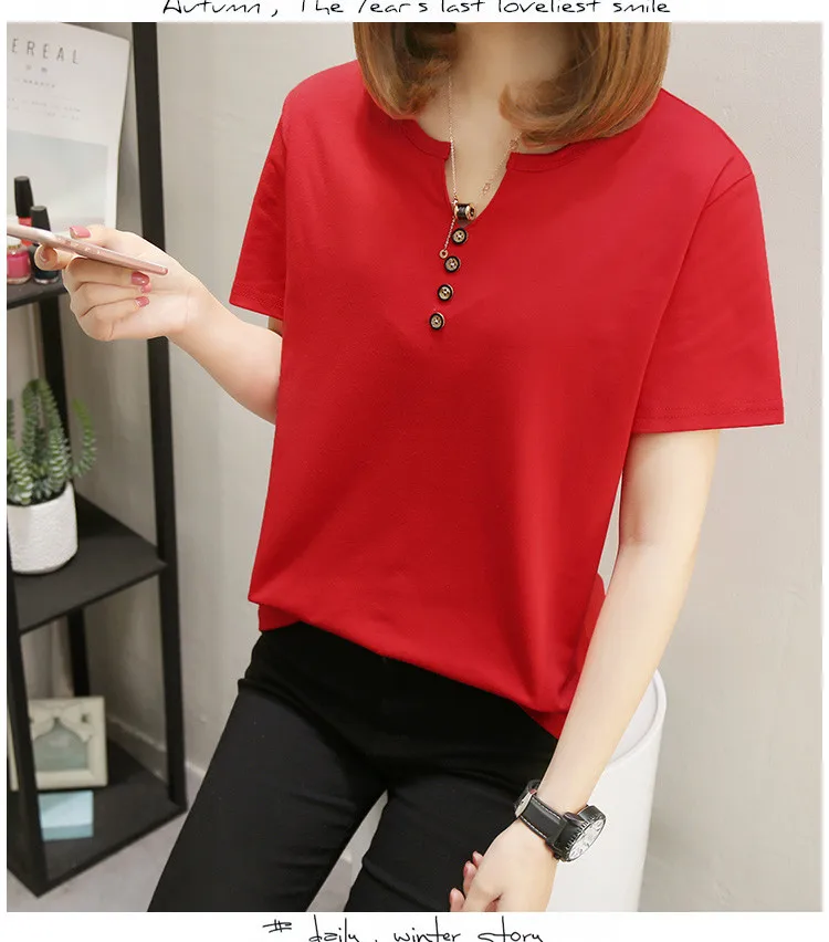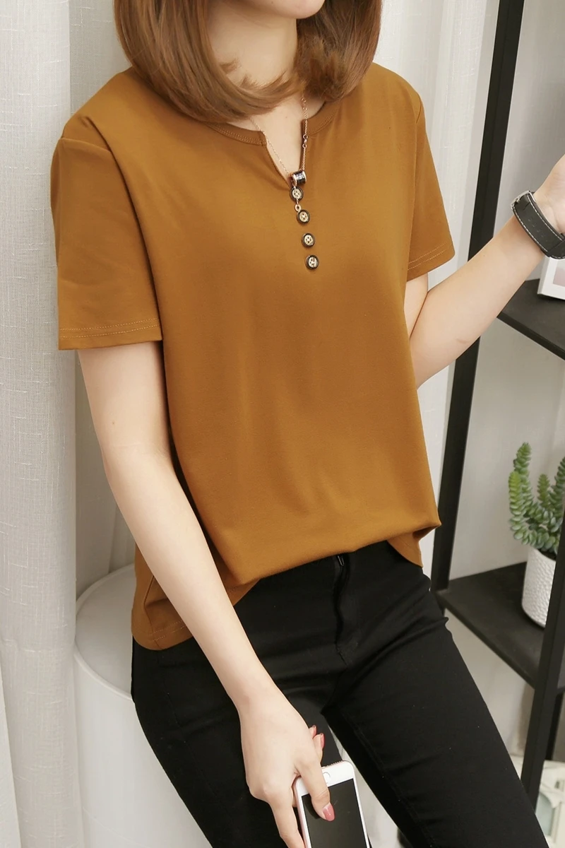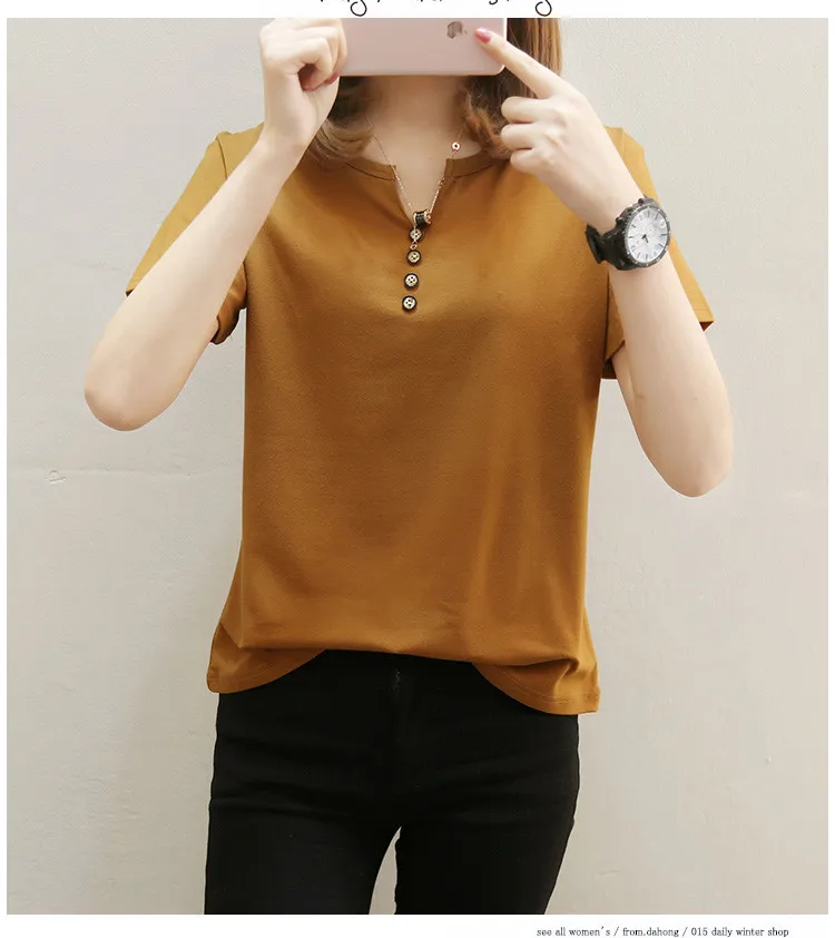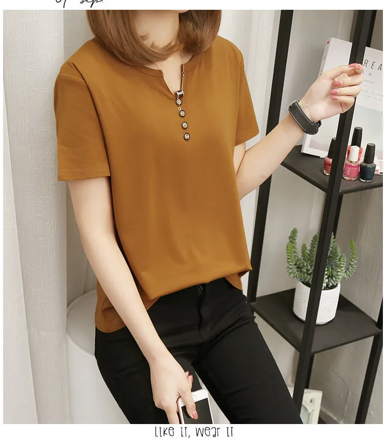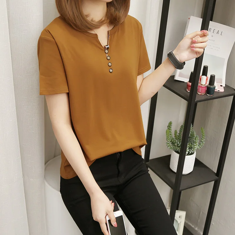 Футболка женская в стиле оверсайз, однотонный Повседневный Топ с V-образным вырезом, рубашка с коротким рукавом для женщин, 2021 кг, лето 100