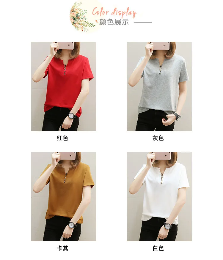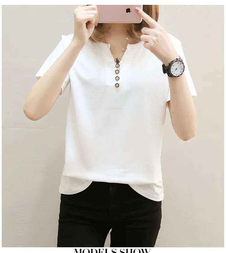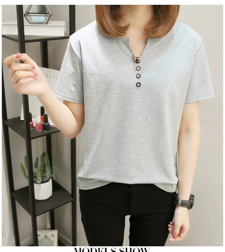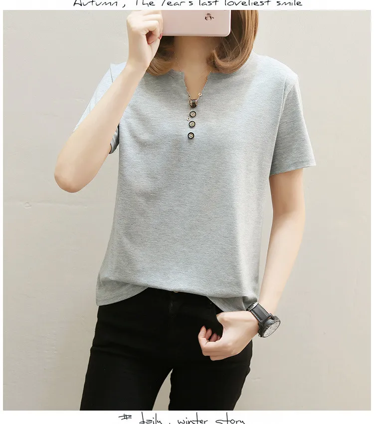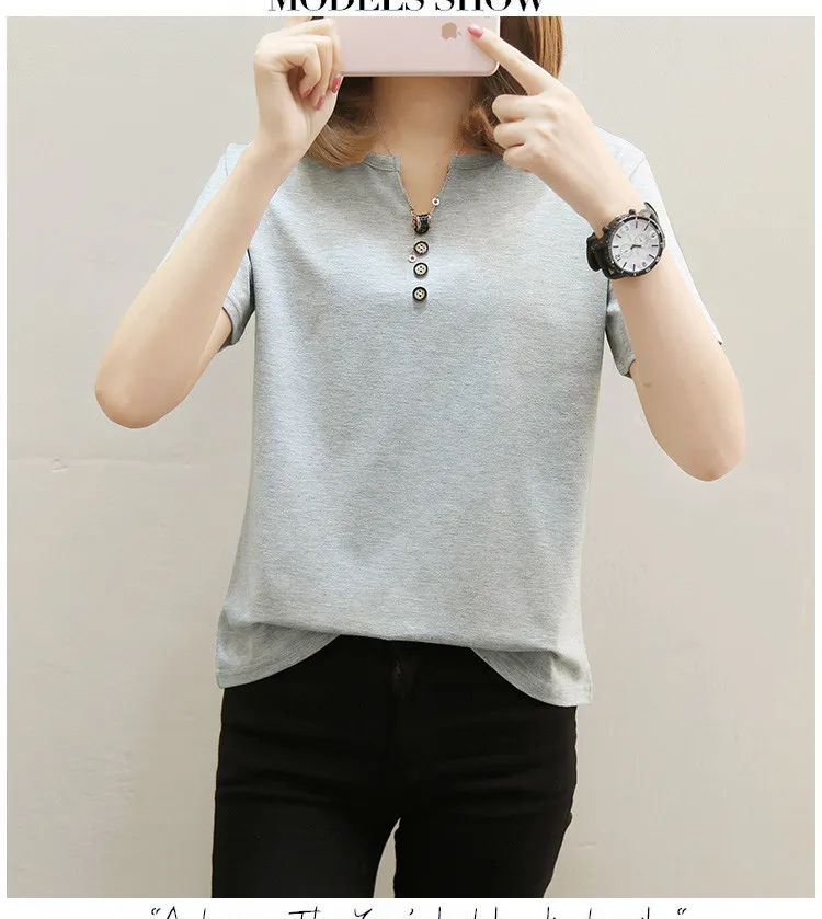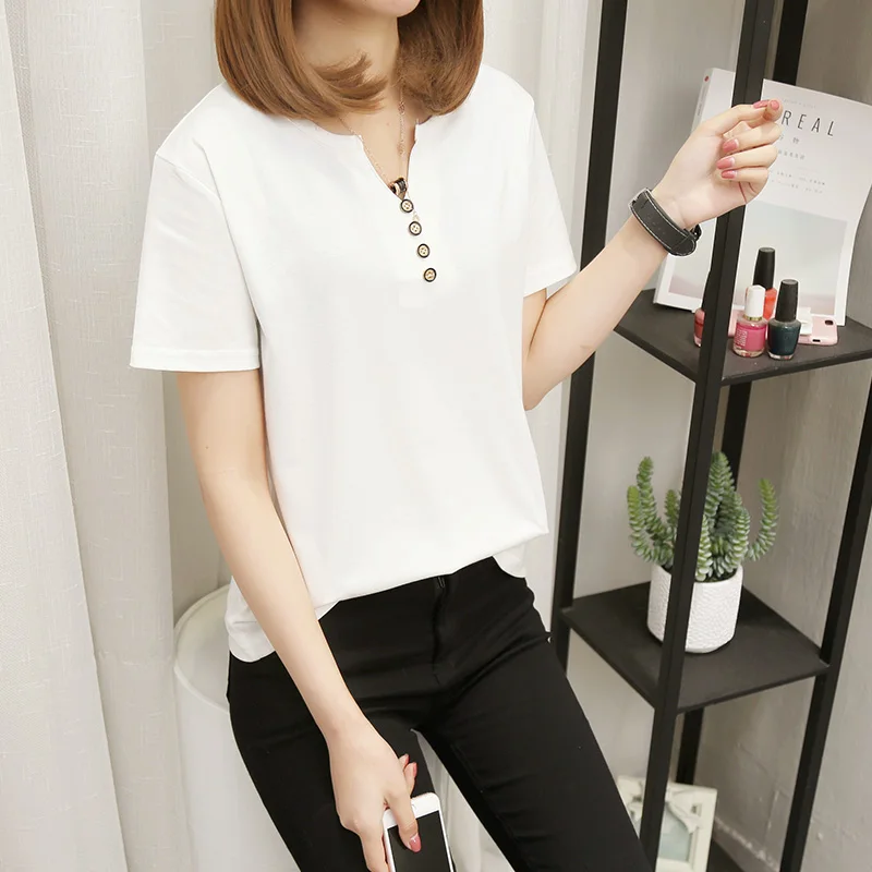 Футболка женская в стиле оверсайз, однотонный Повседневный Топ с V-образным вырезом, рубашка с коротким рукавом для женщин, 2021 кг, лето 100