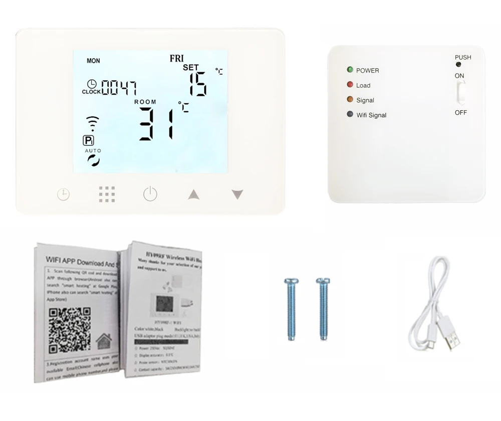 Посылка содержит Термостат 1 шт. Приемник 1 шт. Штекер 1 шт. Винты 2 шт. Руководство 1 шт.