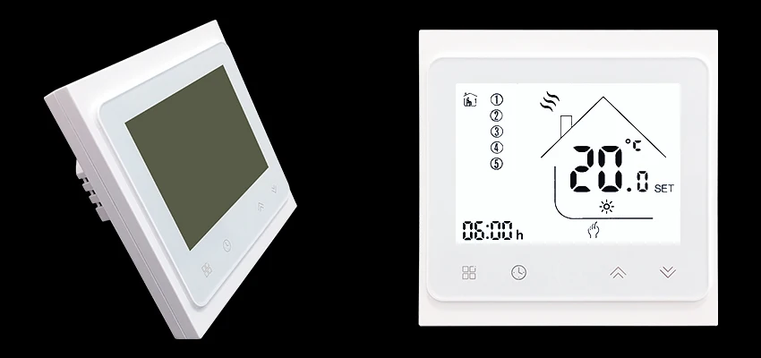 Технические параметры термостата Датчик: NTC Точность: +/-0,5 по Цельсию Установочный диапазон температур: от 5 до 35 градусов Цельсия Диапазон комнатных температур: от 5 до 99 градусов Цельсия Потребляемая мощность: <1,5 Вт Ошибка таймера: 1% Источник питания: от 90 до 240 В переменного тока, от 50 до 60 Гц Текущая нагрузка: 3 А Материал корпуса: поликарбонат + АБС (огнестойкий) Размер: 86*86 мм Температура окружающей среды: от 0 до 45 градусов Цельсия, от 5 до 95% относительной влажности (без конденсации) Температура хранения: от-5 до 55 градусов Цельсия