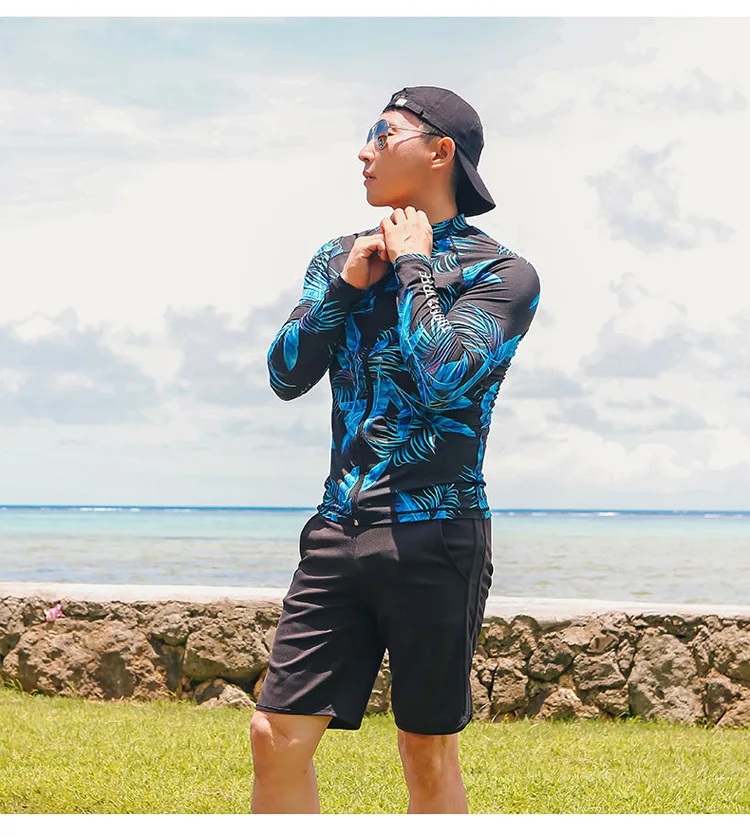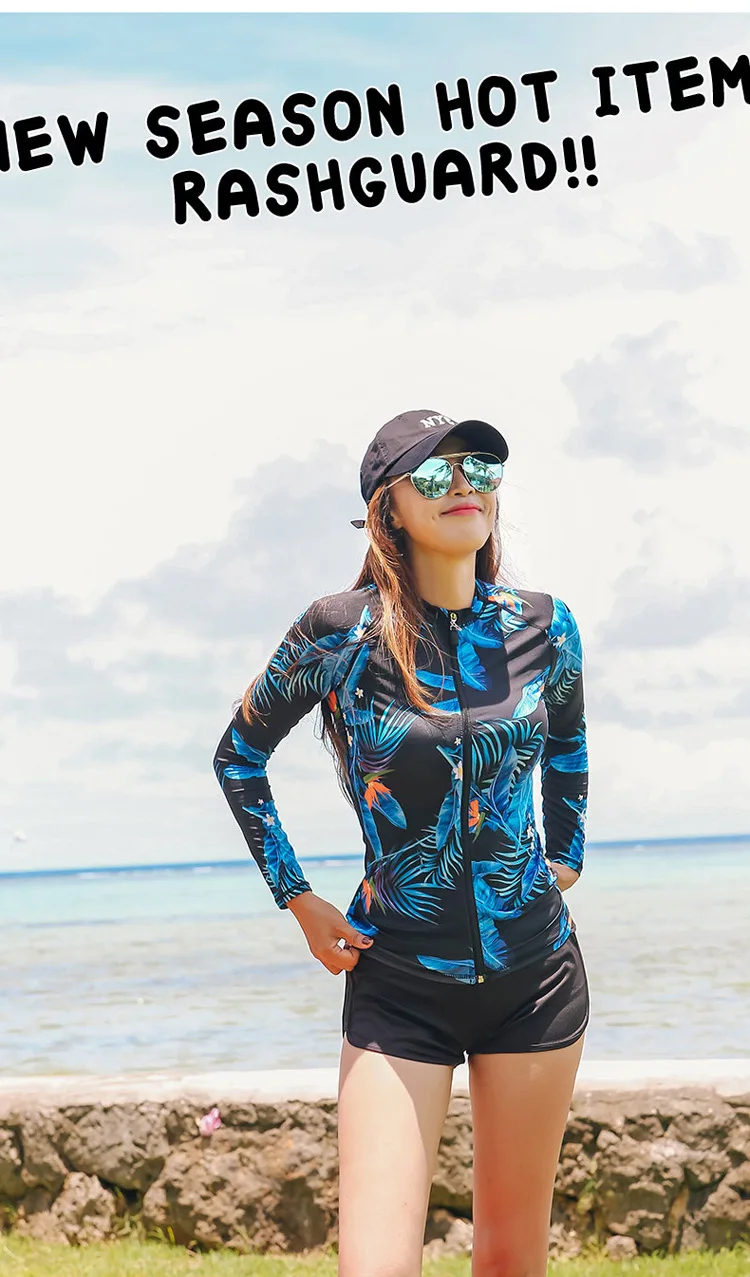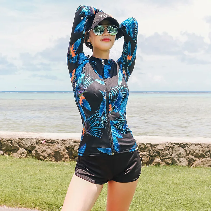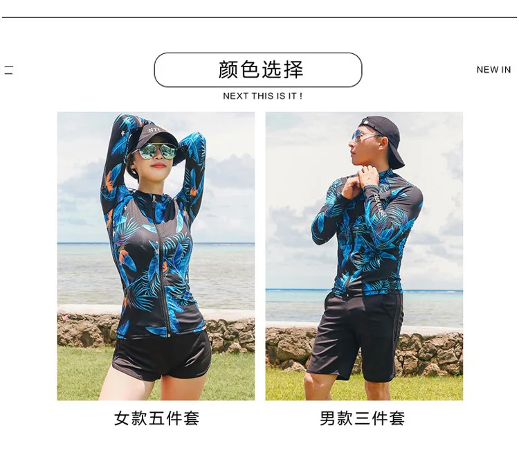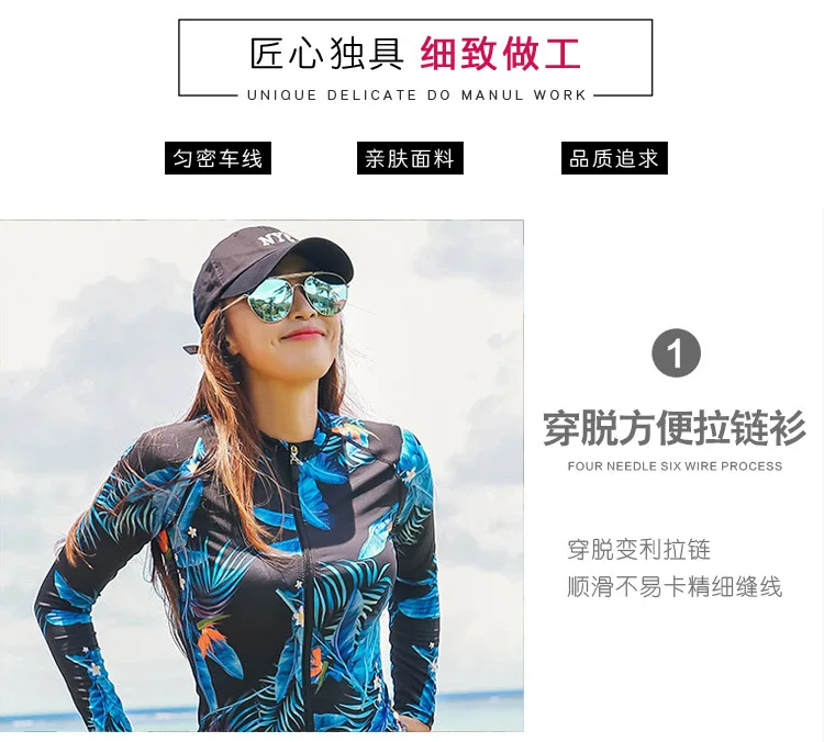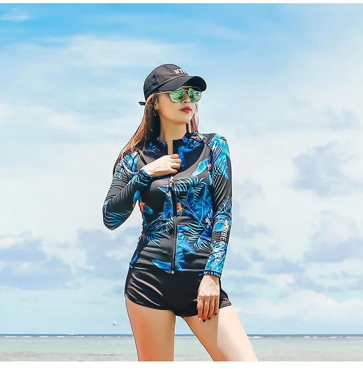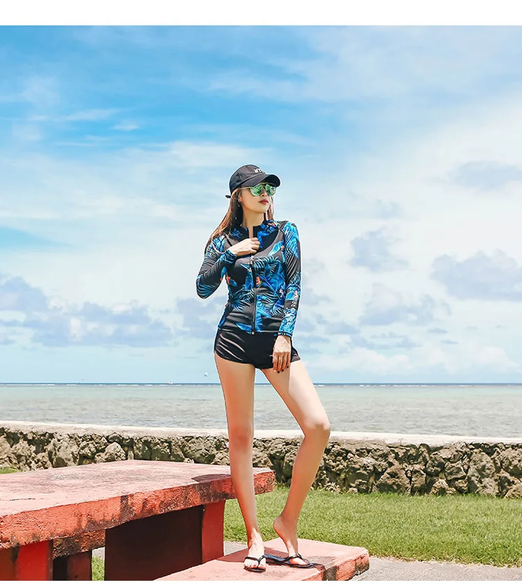 Женский комплект из 5 предметов, костюм для плавания с длинным рукавом и ногами, УФ-защита от солнца, топ на молнии и низ, рубашка для серфинга для плавания-8