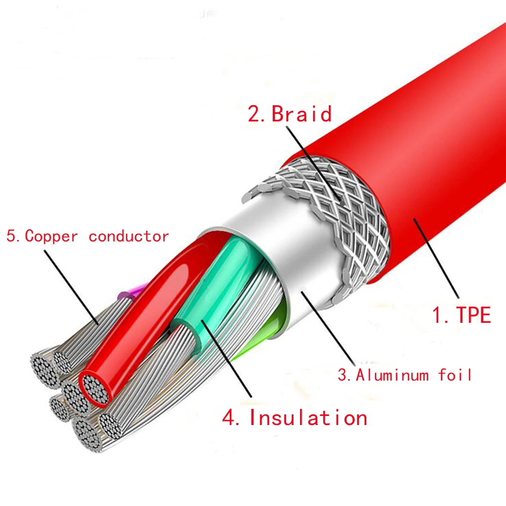 Оригинальный красный зарядный кабель 35 см100 см150 см200 см 4A Usb...