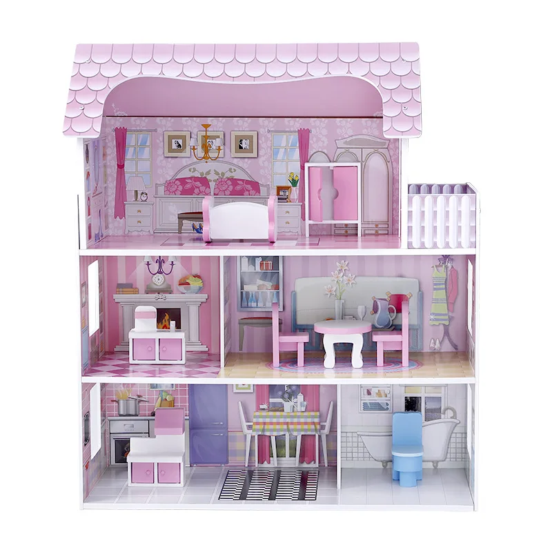 Деревянный кукольный домик DIY с мебелью, роскошный имитационный кукольный домик, сборные игрушки для детей, подарки для девочек