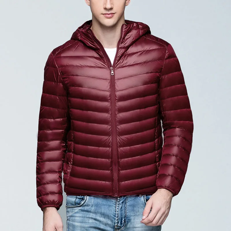 Молодежный тонкий короткий осенний модный Ультра-светильник с воротником-стойкой, мужское пальто, теплые зимние куртки, пуховик, верхняя одежда с капюшоном