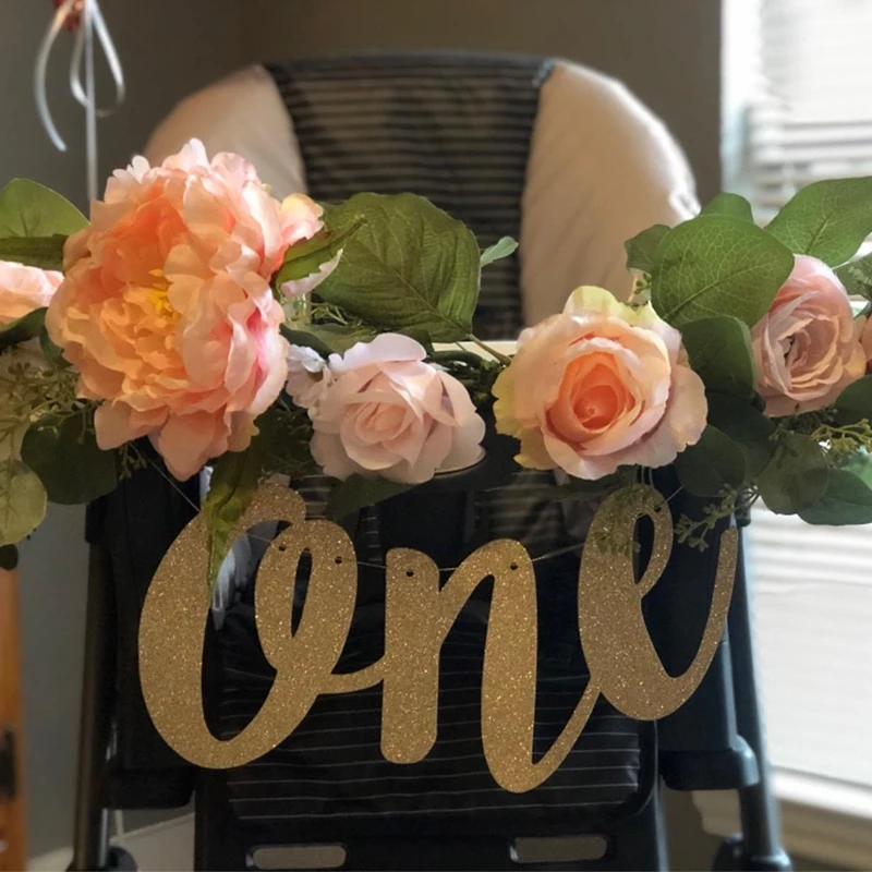 Блестящий Золотой баннер для первого дня рождения ребенка, бумажный баннер, гирлянды для стула, товары для первого дня рождения, декор для детского душа