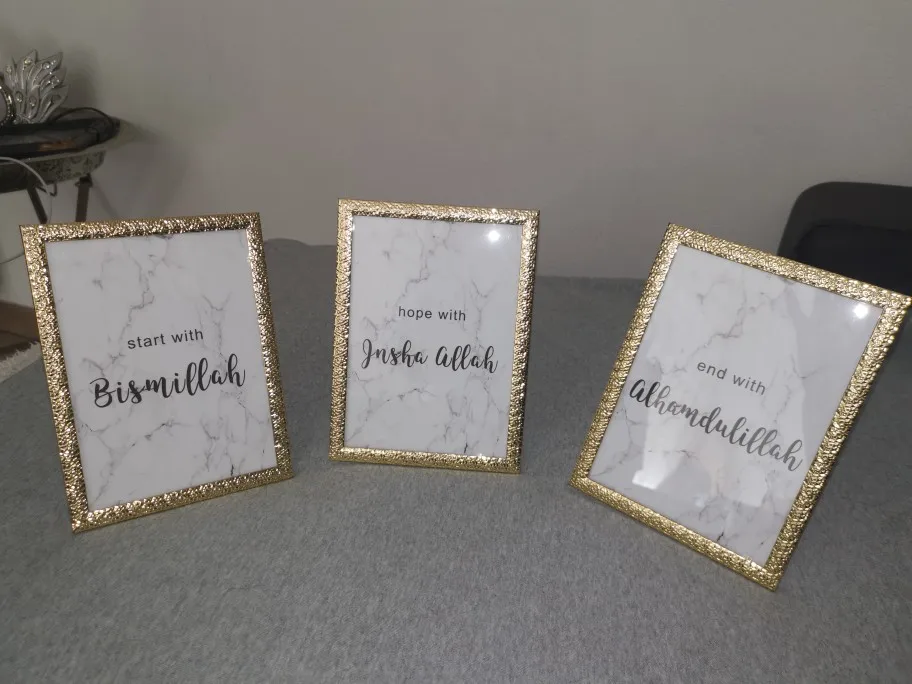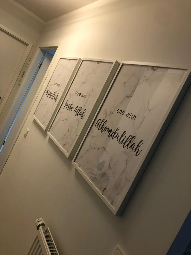 Настенный плакат на холсте с мусульманскими цитатами Аллах Бисмиллах, простота, искусственная мраморная современная домашняя декоративная картина