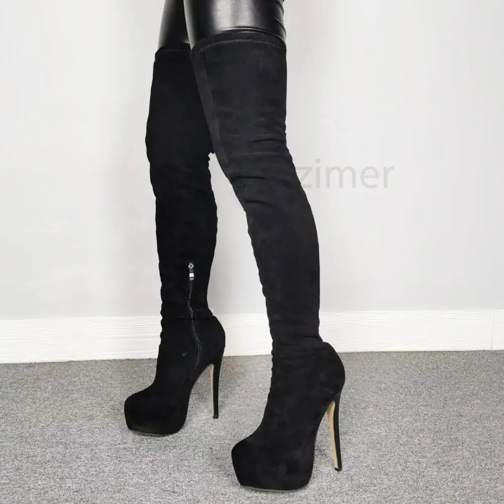 BERZIMERженские сапоги до бедра на платформе; Черные замшевые сапоги выше колена на каблуке; Zapatos Mujer; Черная обувь; Большие размеры 39, 47, 52