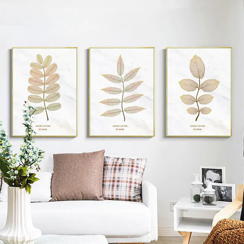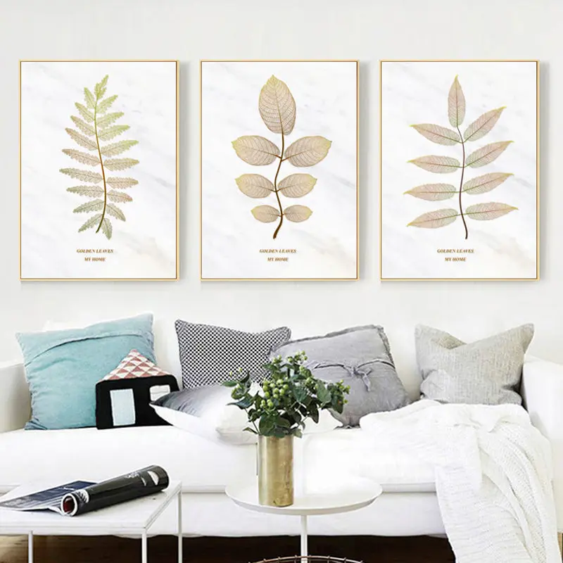 Картина с изображением золотых листьев, домашний декор, Скандинавская Картина на холсте, настенное искусство, современные минималистские плакаты с растениями и принты для декора гостиной