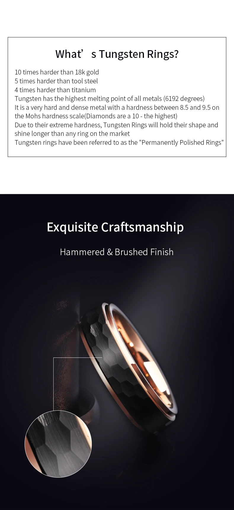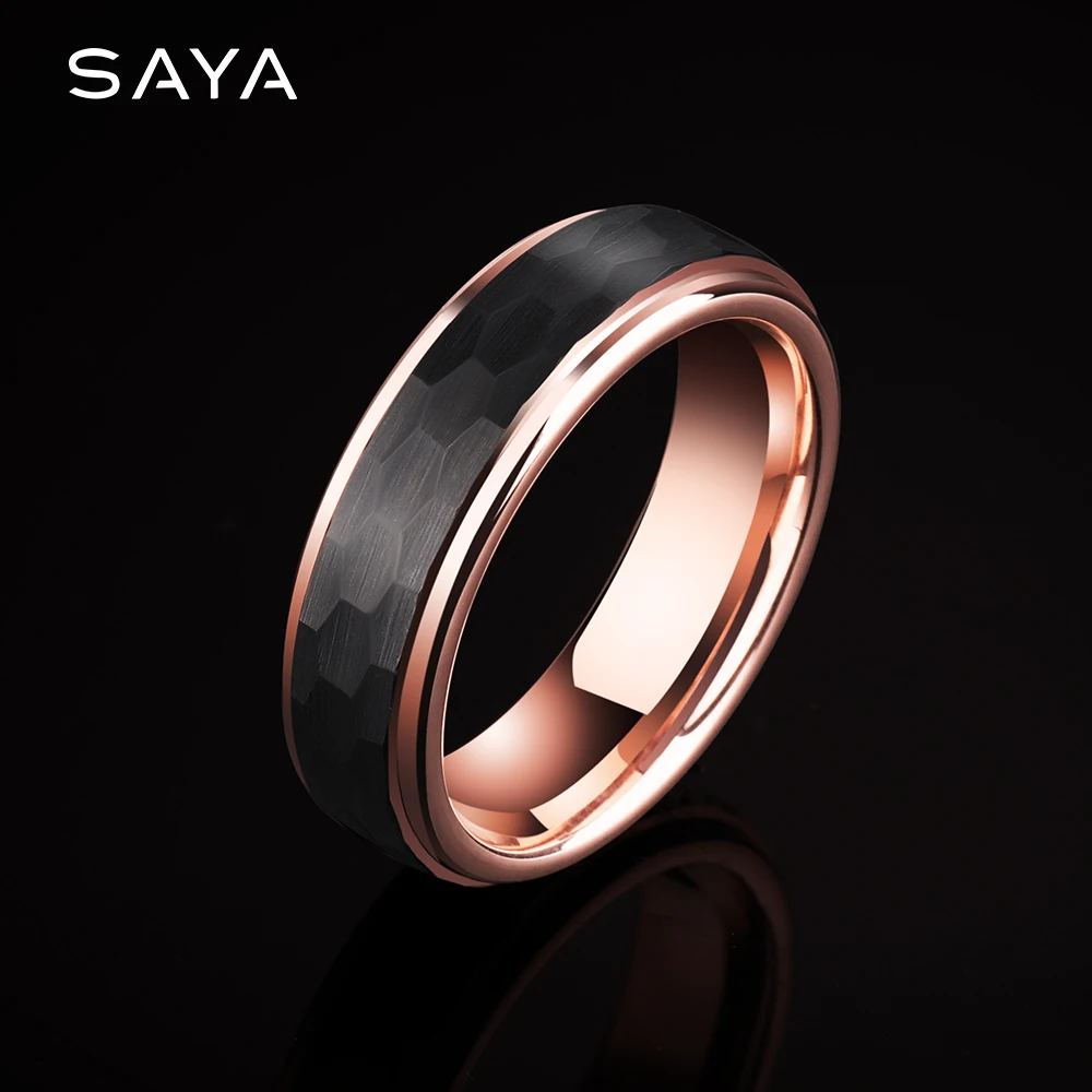 Кольцо для мужчин, женщин, вольфрамовое кольцо для помолвки, матовое черное покрытие из розового золота внутри, ширина 6 мм, бесплатная доставка, по индивидуальному заказу