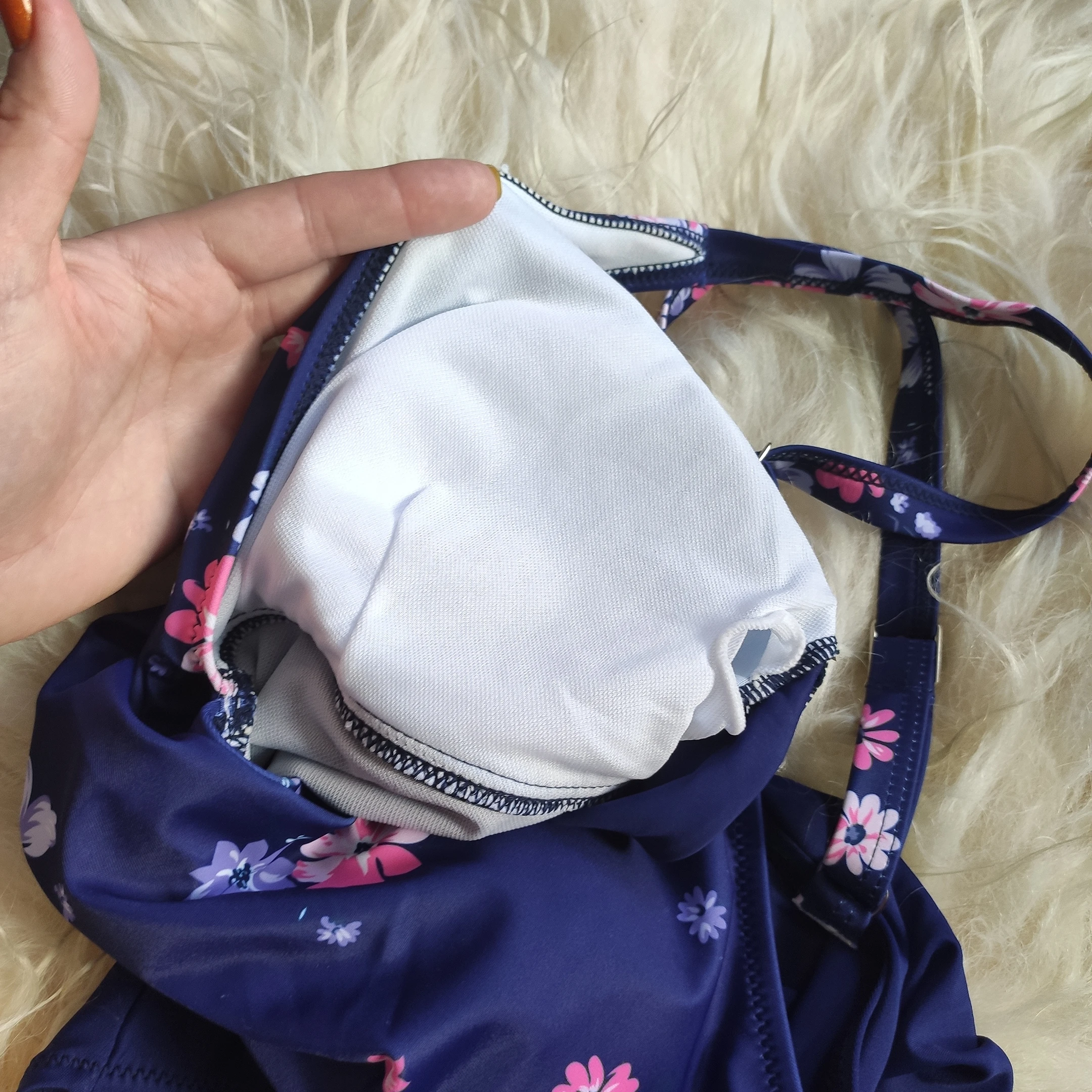Доставка до Москвы была быстррй и заняла всего 10 дней. Купальник был упакован в прозрачный пакет с зип-локом. На выбор у продавца изделие представлено в 9 расцветках. Я выбрала color 3. Купальник оказался точно такой же как на фото продавца, верх полосатый, а низ темный с цветочным принтом. Принт яркий и четкий. На свои параметры 85-67-90 и рост 173 см., я купила размер S. Купальник сел превосходно. Подойдёт на параметры и больше моих. Купальник изготовлен из плотной, но в тоже время мягкой ткани, которая хорошо тянется. Состав материала: Полиамид - 82%, Эластан - 18%. На изделии присутствует мягкая бирка с составом материала, размером, символами по уходу и страной изготовителем. Внутри по всему купальнику пришита подкладка из трикотажного полотна белого цвета. Для груди есть тоненькие паралоновые вставки, которые при желании можно убрать. Бретели с регулировкой длины, не съемные. Смотрится купальник оригинально. Рекомендую!