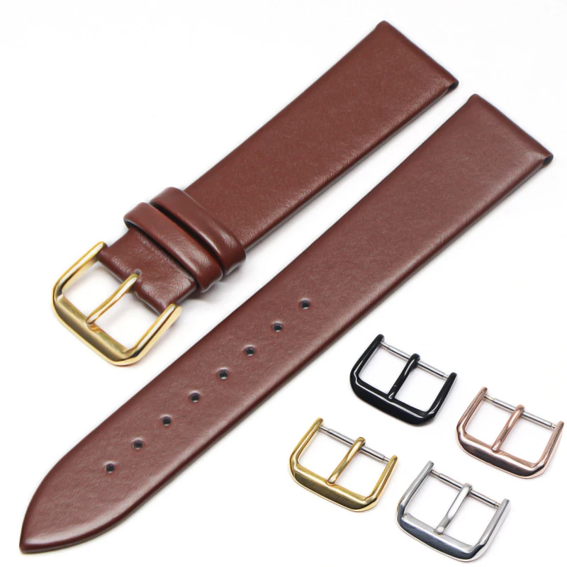 Ремешок из натуральной воловьей кожи для мужских и женских часов, черный коричневый браслет с пряжкой, 18 мм 20 мм 22 мм 24 мм