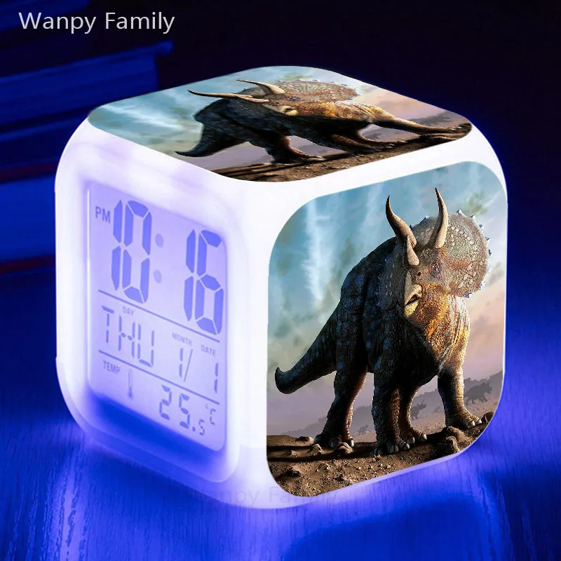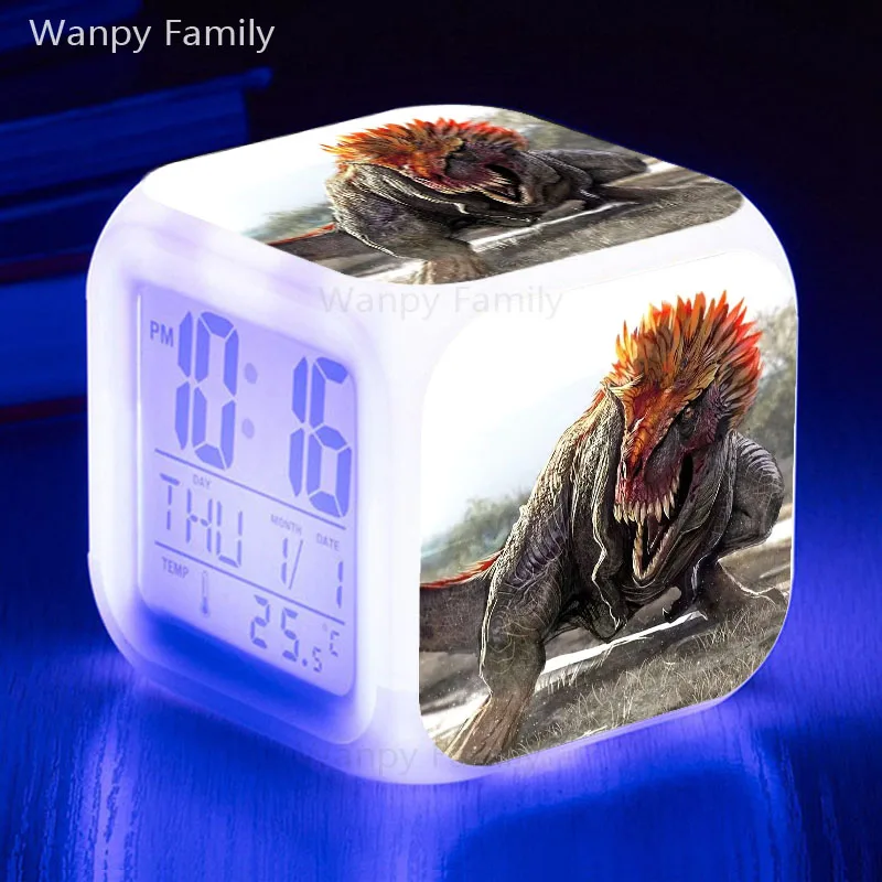 Светодиодный Будильник с динозавром Юрского периода, 7 цветов, светящийся цифровой будильник для детей, подарок на день рождения, многофункциональные часы