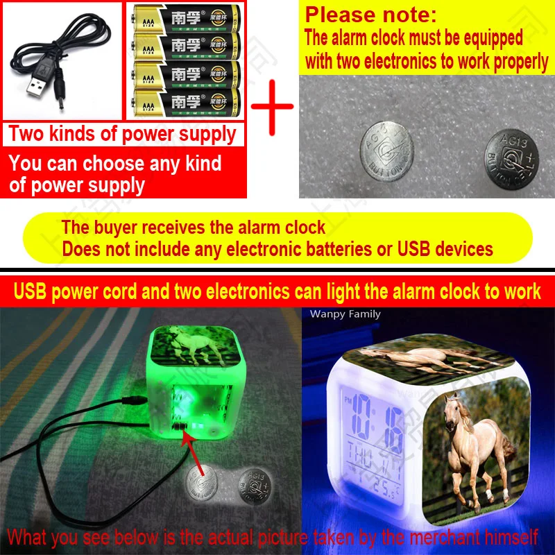 Милая лошадка светодиодный Будильник Детские 7 цветов меняющиеся ци...