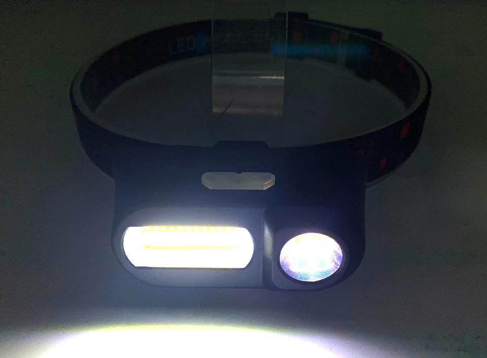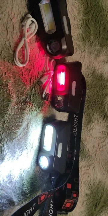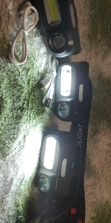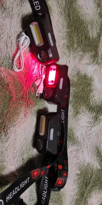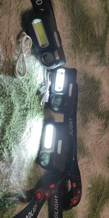 Распаковка на фото! Правой кнопкой устанавливается режим Q5(круглый LED): яркий, тусклый; COB; Q5+COB; COB красный; COB красный+белый стробоскоп. Левой кнопкой (зажав пару секунд) устанавливается режим свободных рук ( взмах руки - светится фонарь, взмах руки - не светится). Акумулятор на 6000 mah. Не знаю сколько будет светить на нем фонарь, но думаю купить на всяк случай запасной акум. Сам фонарь пластиковый. Кнопки и заглушка под разьем силиконовые.