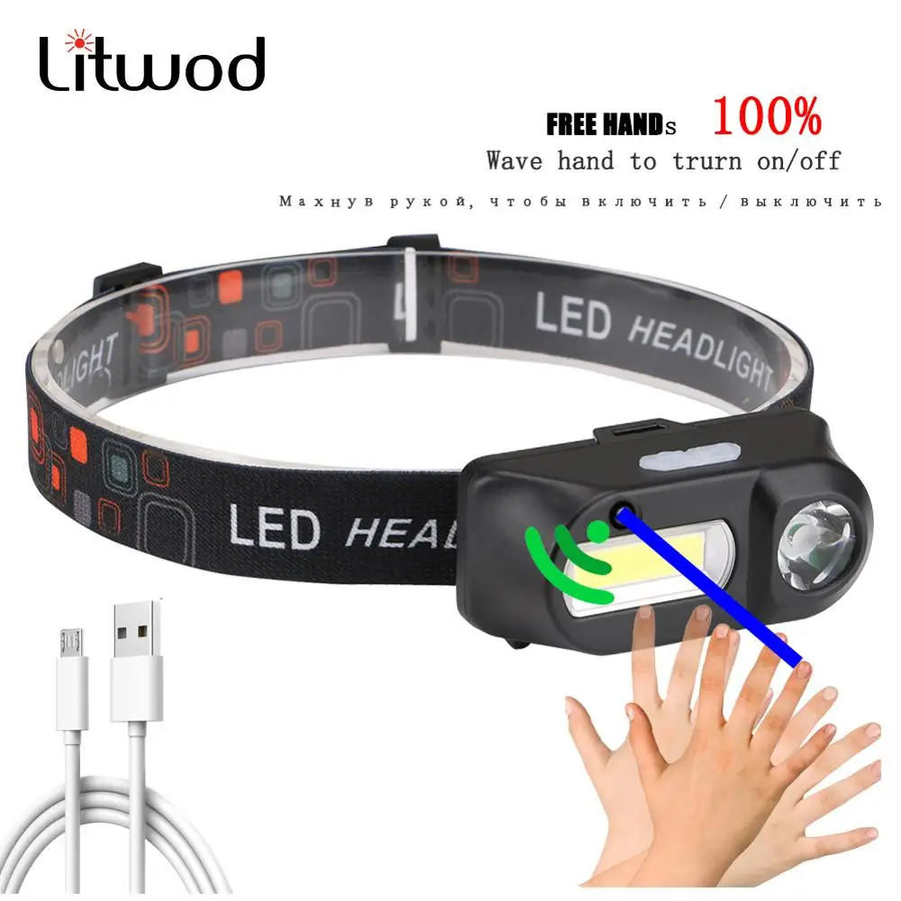 Индуктивный портативный мини XP-G Q5 светодиодный налобный фонарь USB зарядка фары для езды фонарик Открытый Кемпинг Туризм COB свет