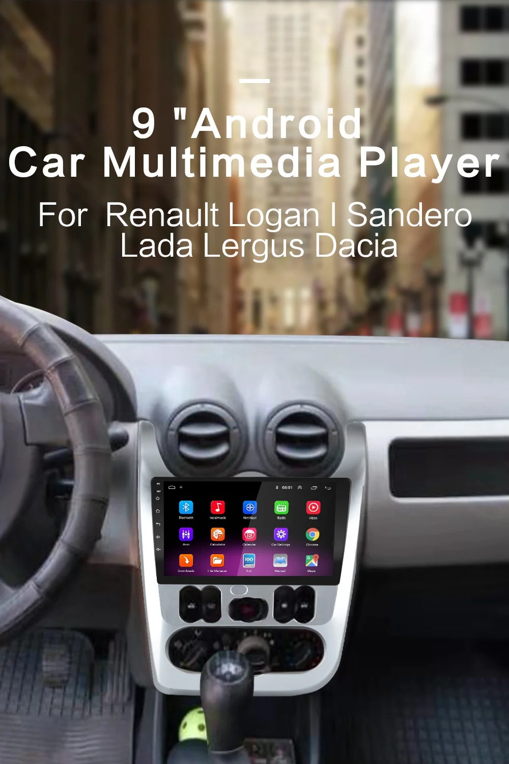 Автомобильный DVD-плеер 2 ГБ + 32 ГБ, проигрыватель на Android 8,1, с 9 "экраном, GPS, Wi-Fi, для Renault Logan I, Sandero, Lada Lergus, Dacia, Duster