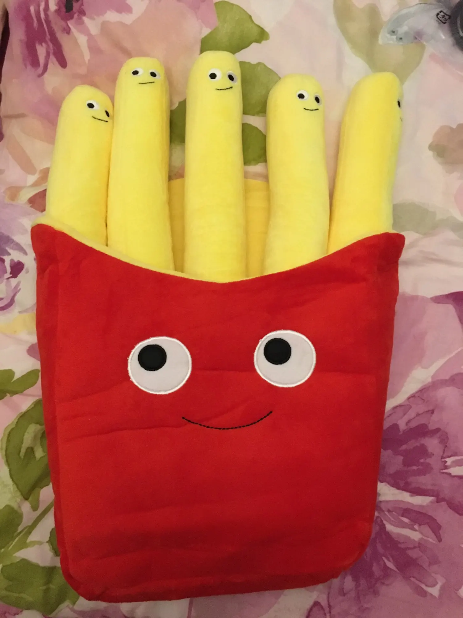 Товар такой же, как и ожидалось. Я думал, что это будет дешево, но плюш достаточно хорошо изготовлен. Картофель фри крепкий и не ломается вокруг, когда вы его держите. Свободная строчка минимальна. Превосходный, хороший продукт.