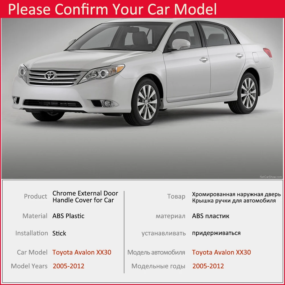 Накладка на дверную ручку для Toyota Avalon 2005, 2006, 2007, 2008, 2009, 2010, 2011, XX30, хромированная, наклейки, аксессуары