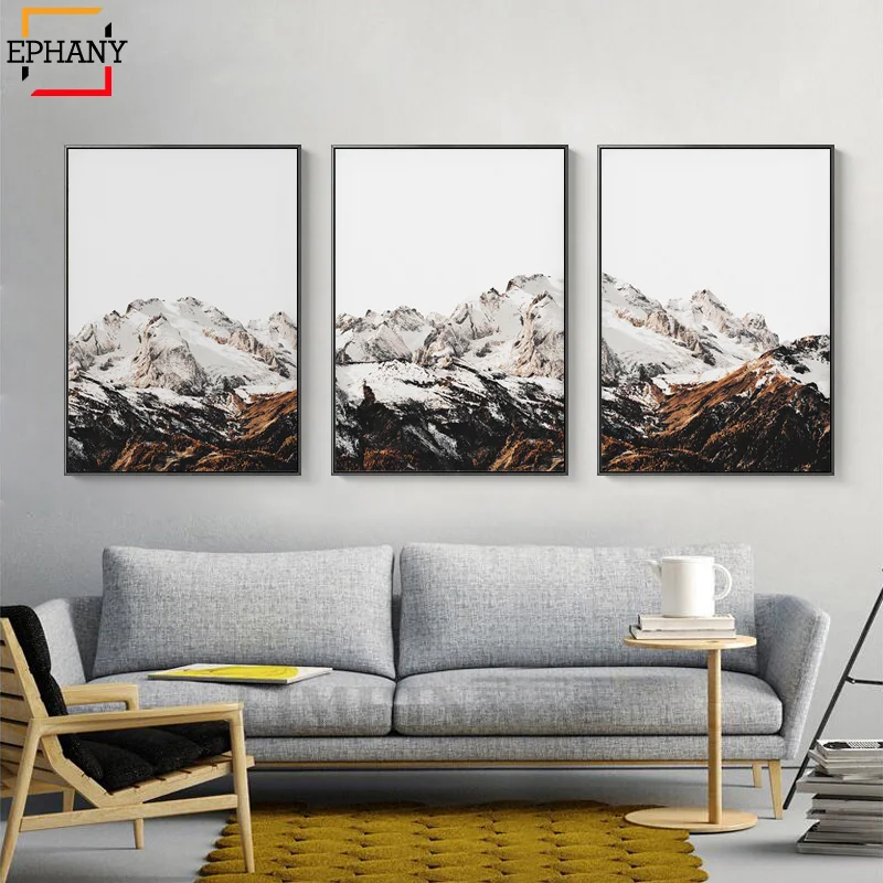 Скандинавская живопись гор на холсте, минималистичный пейзаж, сканд...