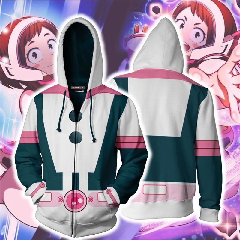Аниме My Hero academic Толстовка OCHACO URARAKA костюм для косплея куртки на молнии с 3D принтом спортивная одежда