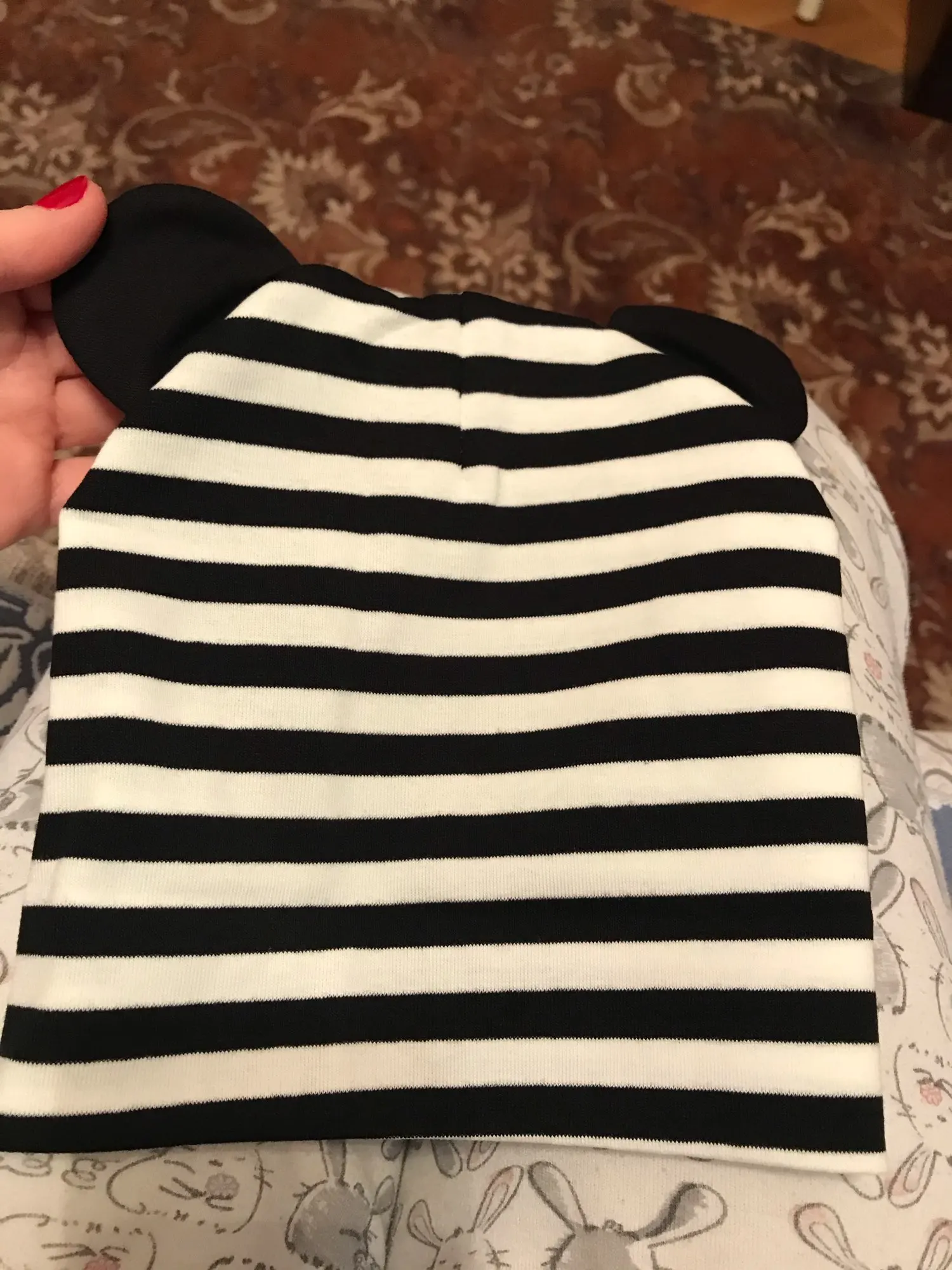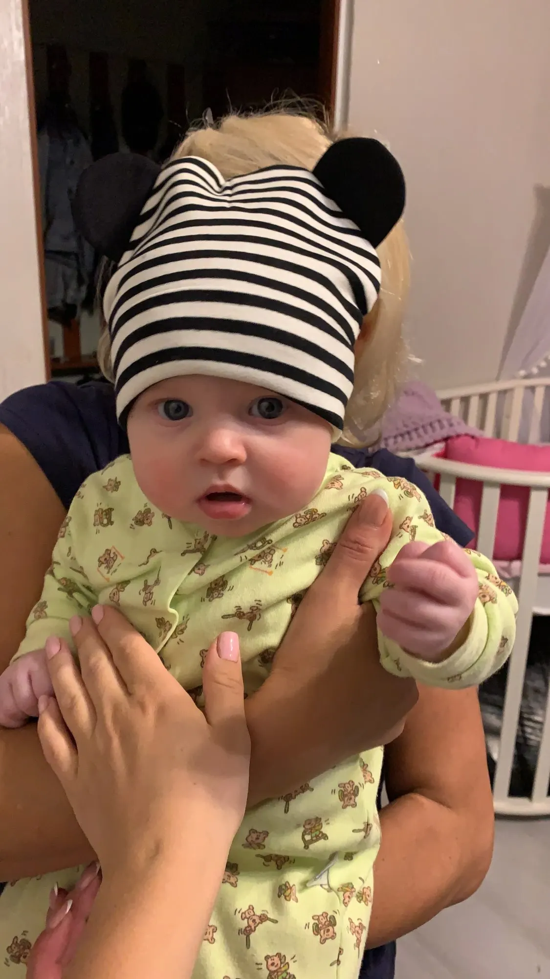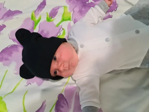 Когда увидела подумала что она огромная и никак не на «0-12». В итоге закатала отворот чуть больше и на 3 месячного малыша села прекрасно, при этом на мою голову тоже натянулась. На фото после стирки, но ещё не поглажено. Качество очень приятное, плотная мягкая но тянущаяся ткань. Единственное посылка шла очень долго, уже забыла про неё, когда дождалась, и холода наступили...теперь будем ждать весну.