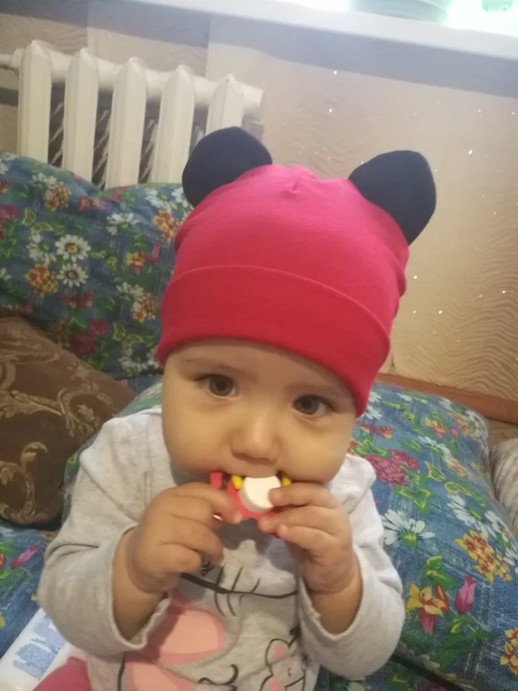 Быстрая доставка, шапочка хорошая, ткань в 2 слоя, подойдёт для деток до года, нам 9 мес, хорошо, весной уже будет мала Цвет приятный, как на фото Рекомендую