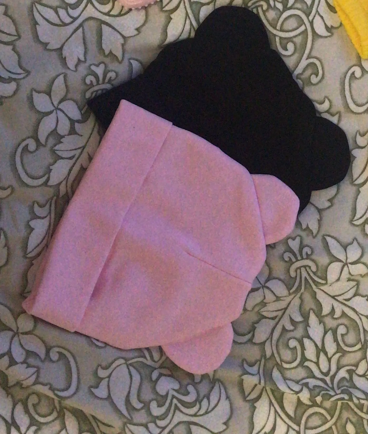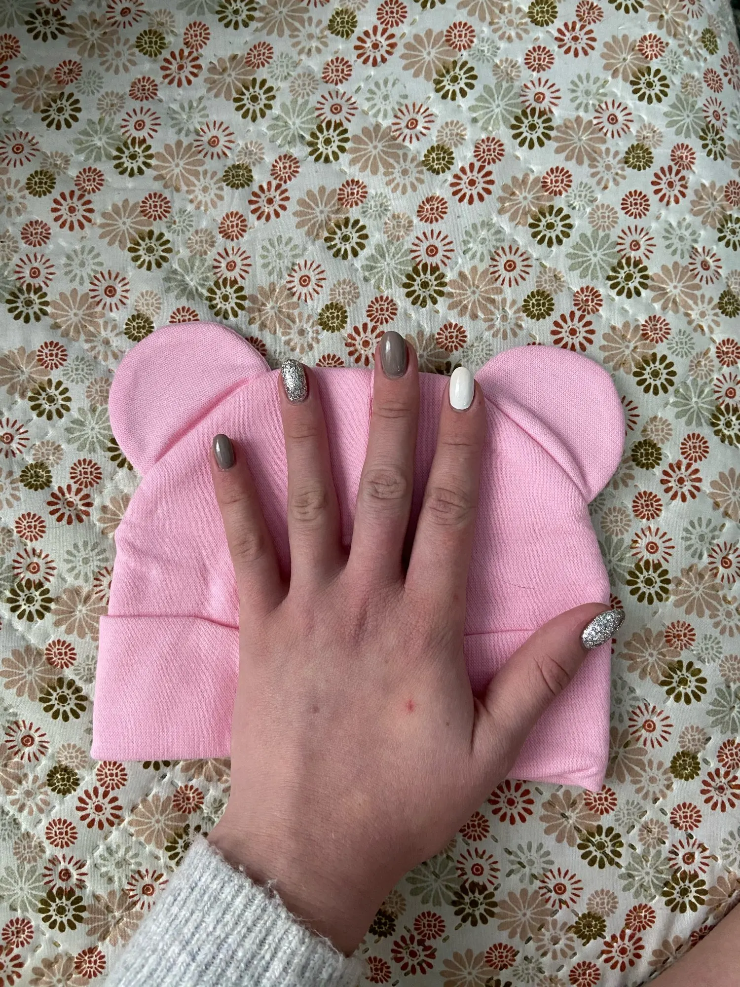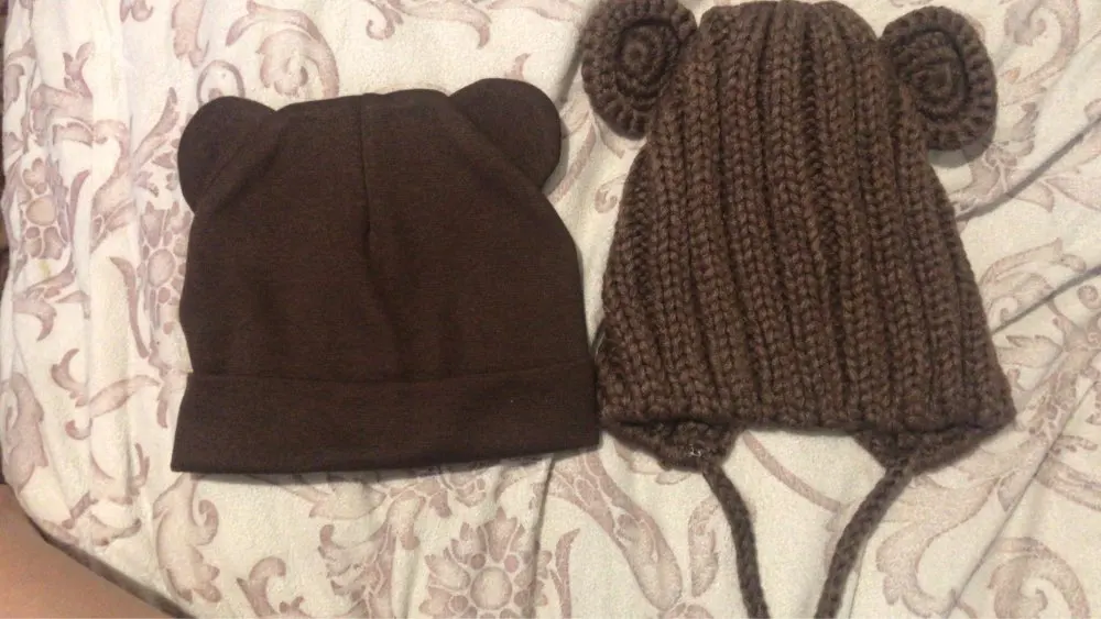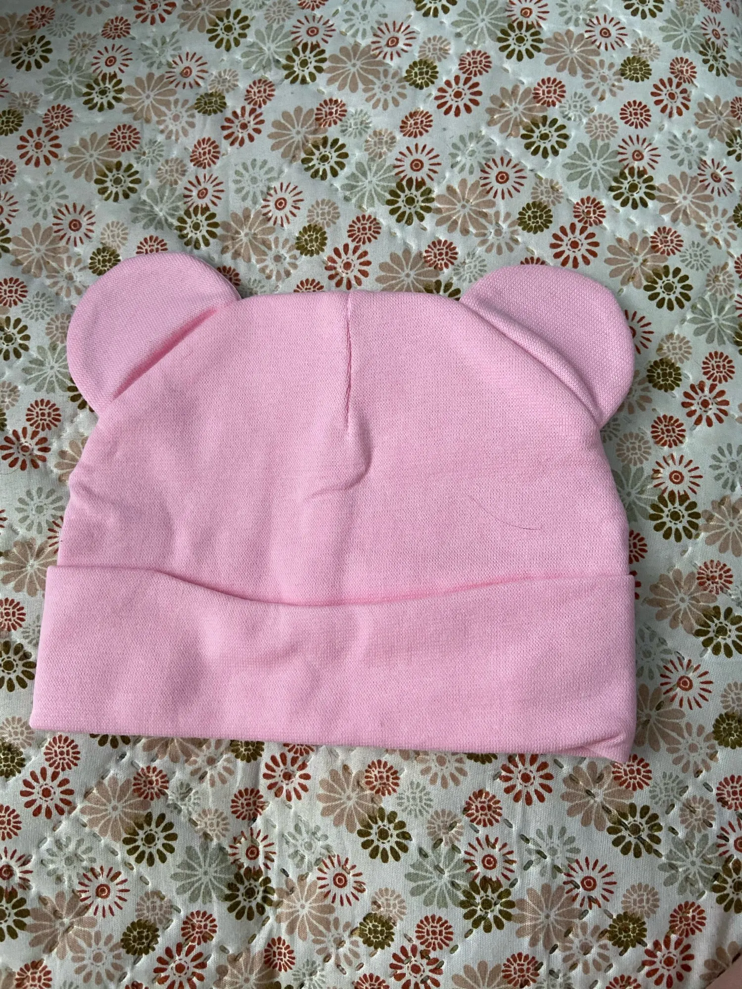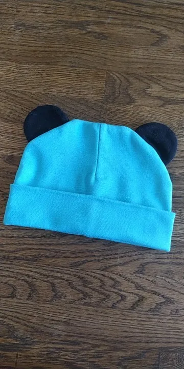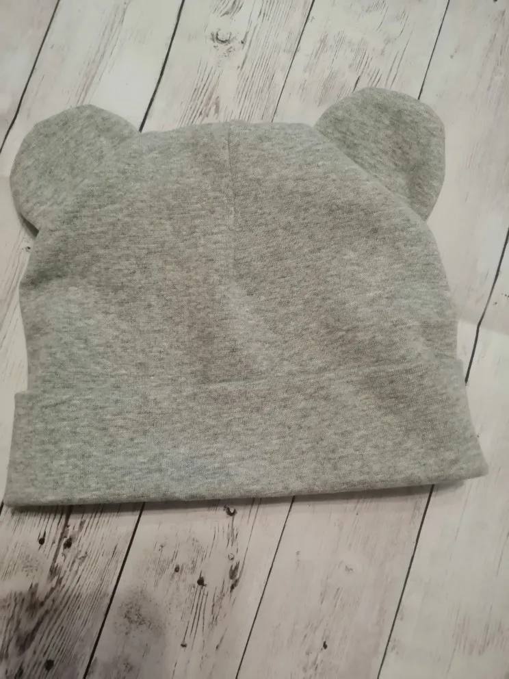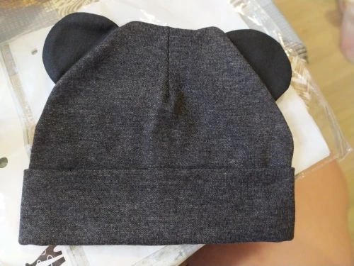 шапочки очень хорошие, ткань приятная, но довольно плотная, летом их не поносишь, только если прям холодные вечера, а так на начало осенних холодных деньков прям самое то, серая плотнее чем голубая. на 3 месяца нам большевата