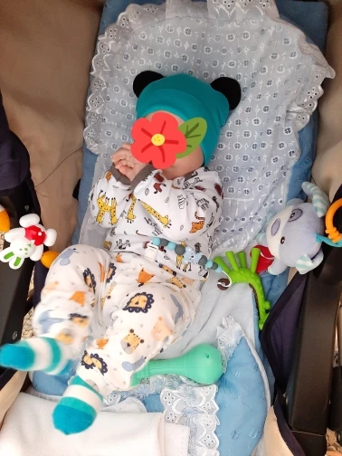 Хорошая шляпа. Ребенку 5 месяцев, он немного великоват, мы надавили его дважды, но он хороший, можно будет носить его дольше.