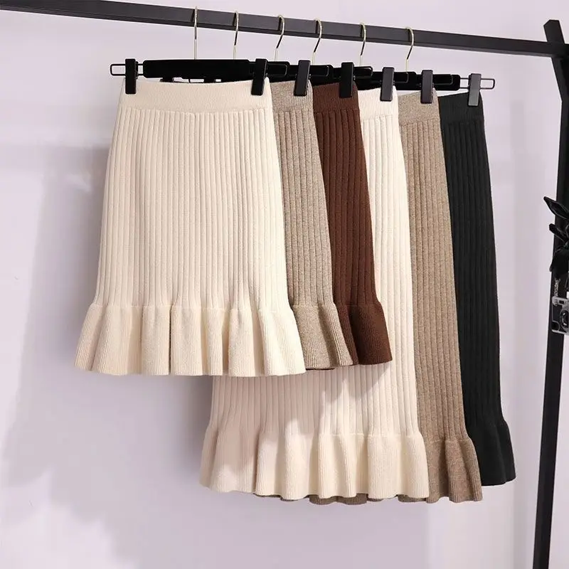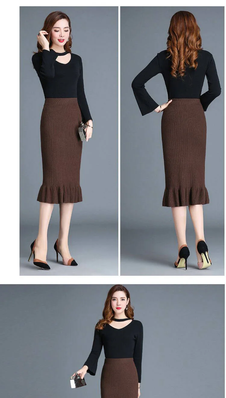 Юбка-миди Женская трикотажная, с эластичным поясом, весна-осень, юбки с завязками