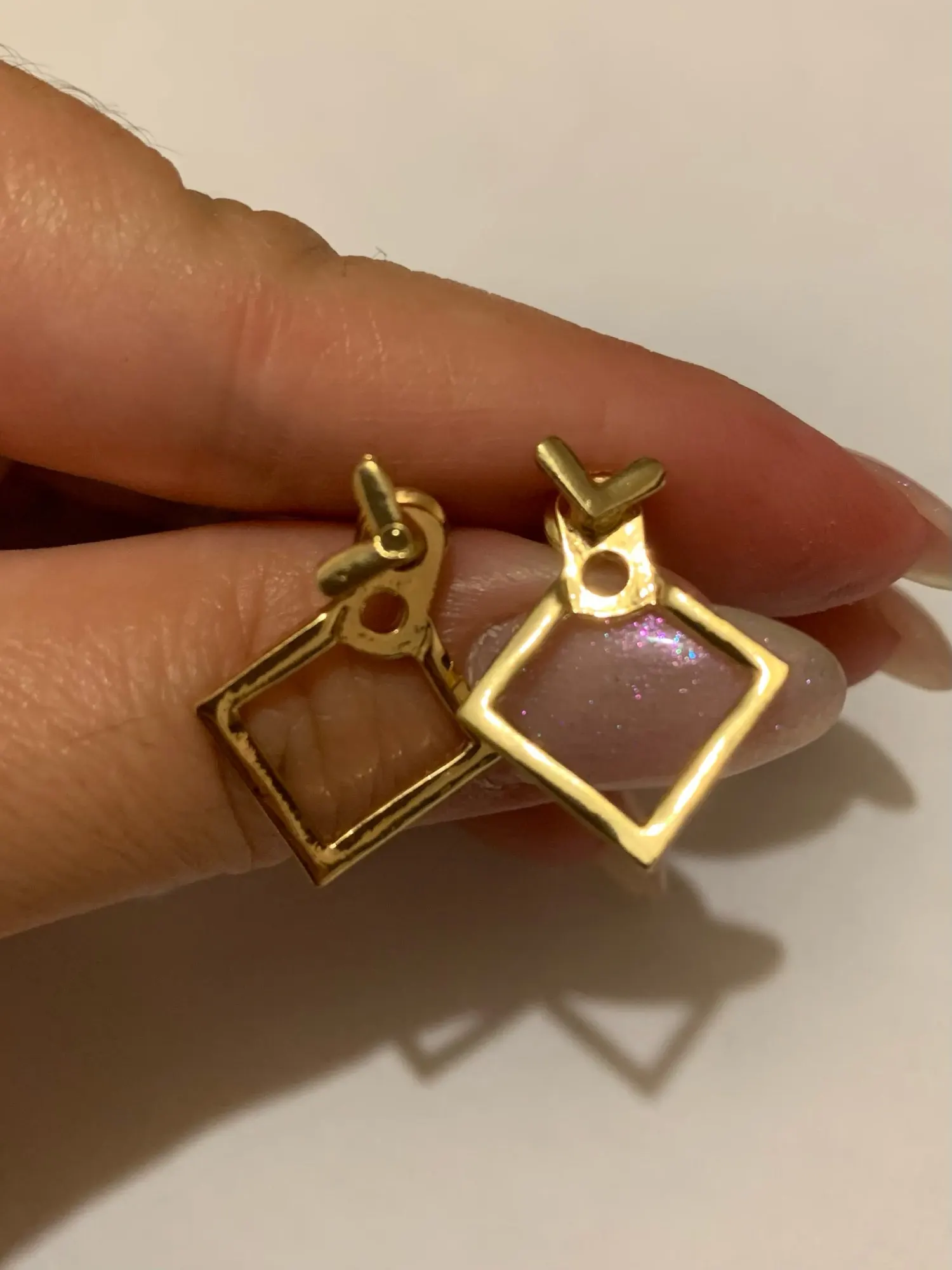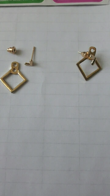 Серьги невозможно носить в составе всех элементов. Так как ромб крепится отдельно от гвоздика, то длины гвоздика просто не хватает. Я закрепила, но потеряется при первом же случае. Носить можно только гвоздик с галочкой, без ромба.