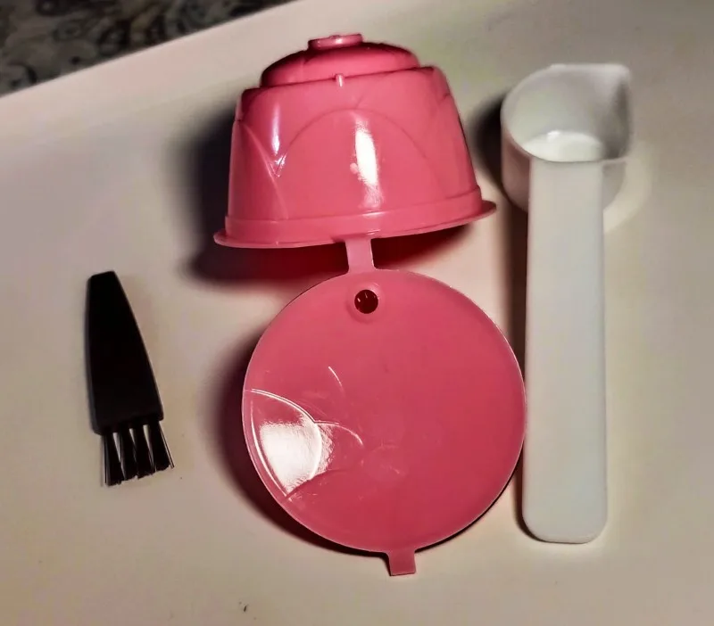 Великолепное изобретение, чтобы дать больше жизни нашей кофеварке Dolce Gusto. Благодаря этому типу продуктов мы можем улучшить нашу экономию и качество жизни, так как теперь любимый кофе, который у нас есть, может быть сделан намного лучше с точными барами и пеной, которая нам нравится. The package CAME with a dosifier ложка and A mini Brush to Clean Our Coffee capsule.