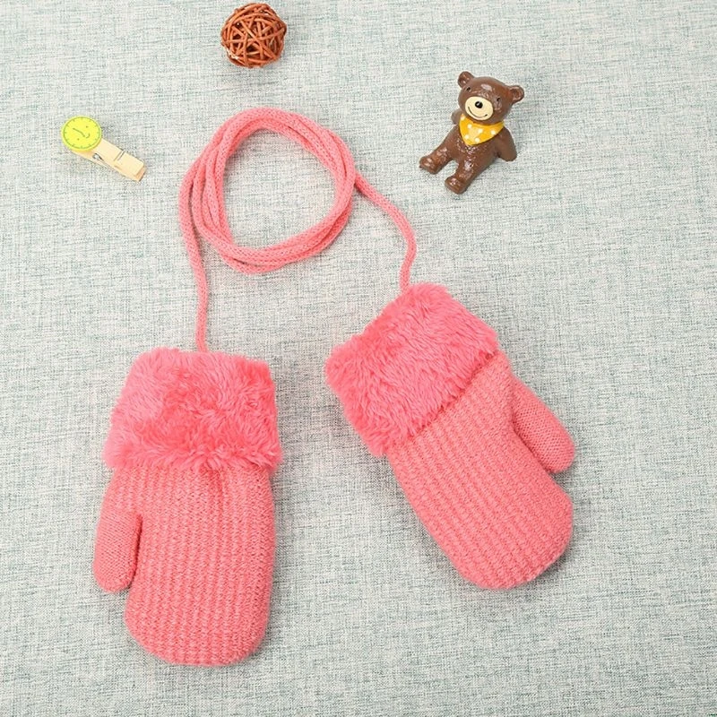 Зимние уличные вязаные перчатки для маленьких мальчиков и девочек, теплые веревочные варежки с пальцами, перчатки для детей, подвесные шейные перчатки для детей