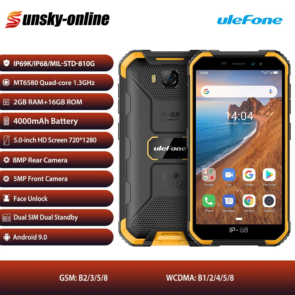 1. Четырехъядерный процессор MTK6580A/W до 1,3 ГГц, хорошая производительность, быстрая работа и бесперебойная работа. 2. 5,0 дюйма 1280x720 пикселей, высокая четкость, яркие цвета, подходит для просмотра видео, игр. 3. Круглая защита на 360 градусов, прочная и долговечная в использовании. 4. Степень водонепроницаемости IP68/IP69K, Пыленепроницаемость, ударопрочность, его можно использовать в широких сценариях использования и применении. 5. Питание от литий-полимерного аккумулятора большой емкости 4000 мАч, длительный срок службы.