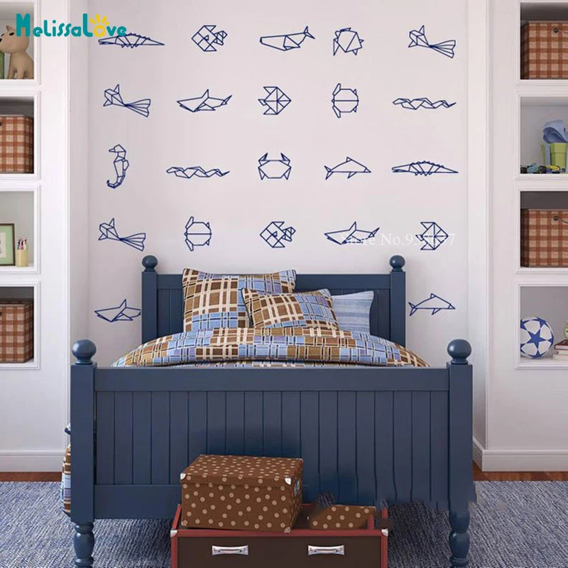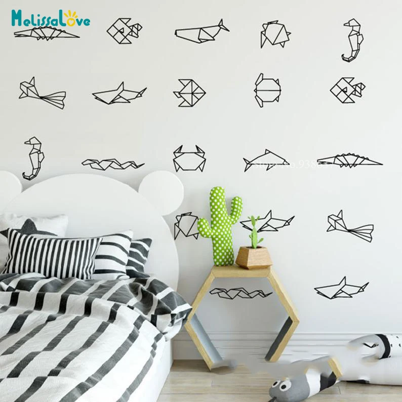 Оригами под морем коллекционные наклейки для детской комнаты художественные геометрические оригами животные детские обои JH008