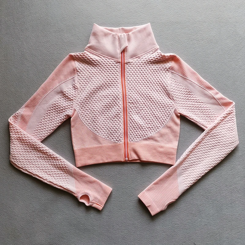 Бесшовные Куртки с молнией, Топ с длинным рукавом, женский спортивн...