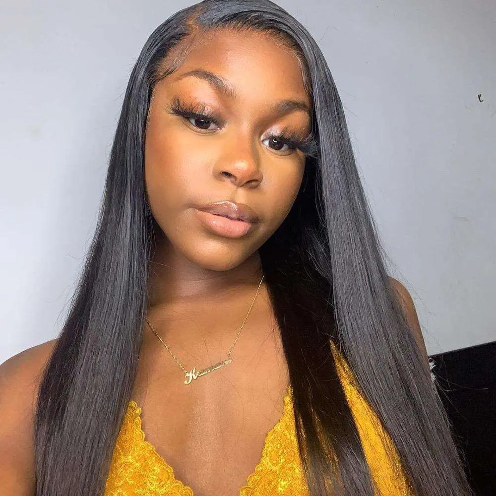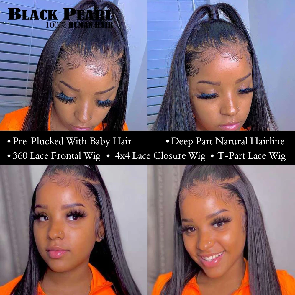 Бразильские 360 парики с фронтальной закрытием, 30 дюймов, прямые человеческие волосы на шнурке, парики с предварительно выщипанными волосами для женщин, с детскими волосами