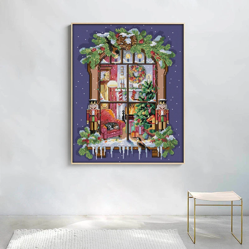 Рождественское окно Набор для вышивки крестом 14ct ткань с принтом Экологичная хлопковая нить вышивка-Шитье Сделай Сам Современное украшение для дома