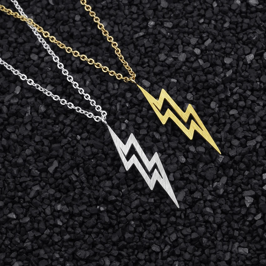 Индивидуальное ожерелье в форме молнии для женщин и мужчин, ожерелья из нержавеющей стали под золото и розовое золото
