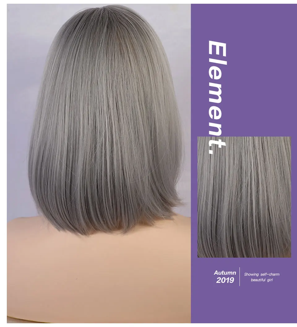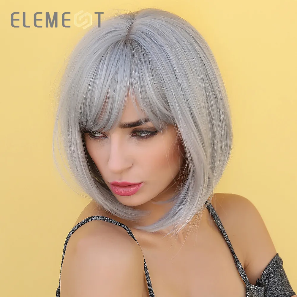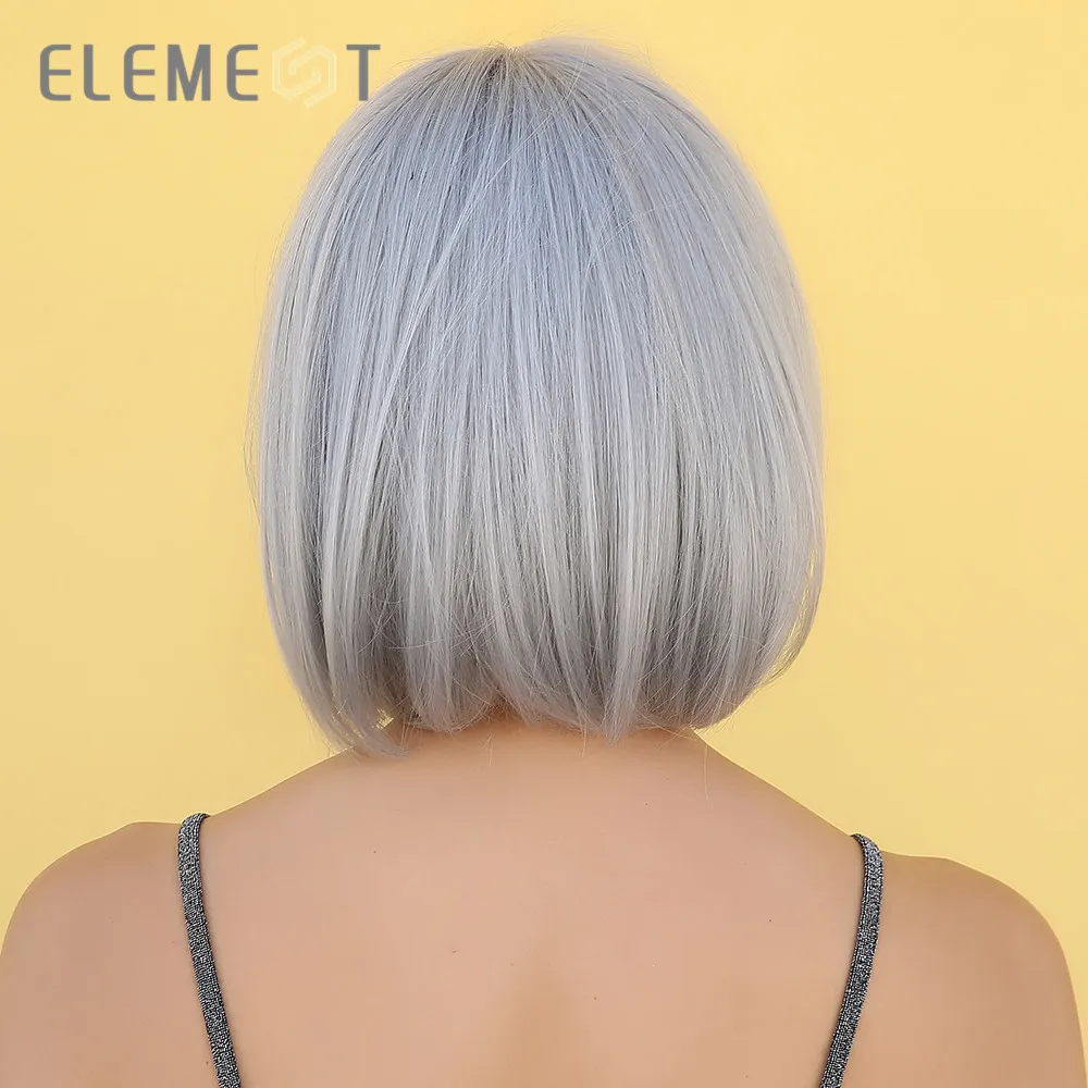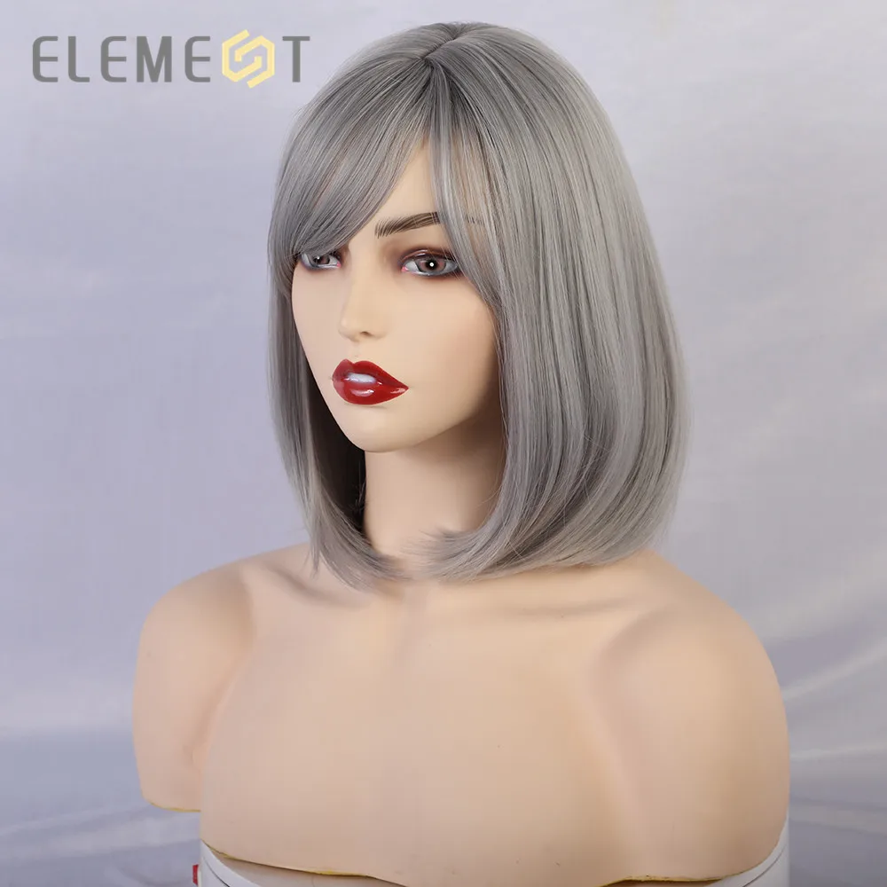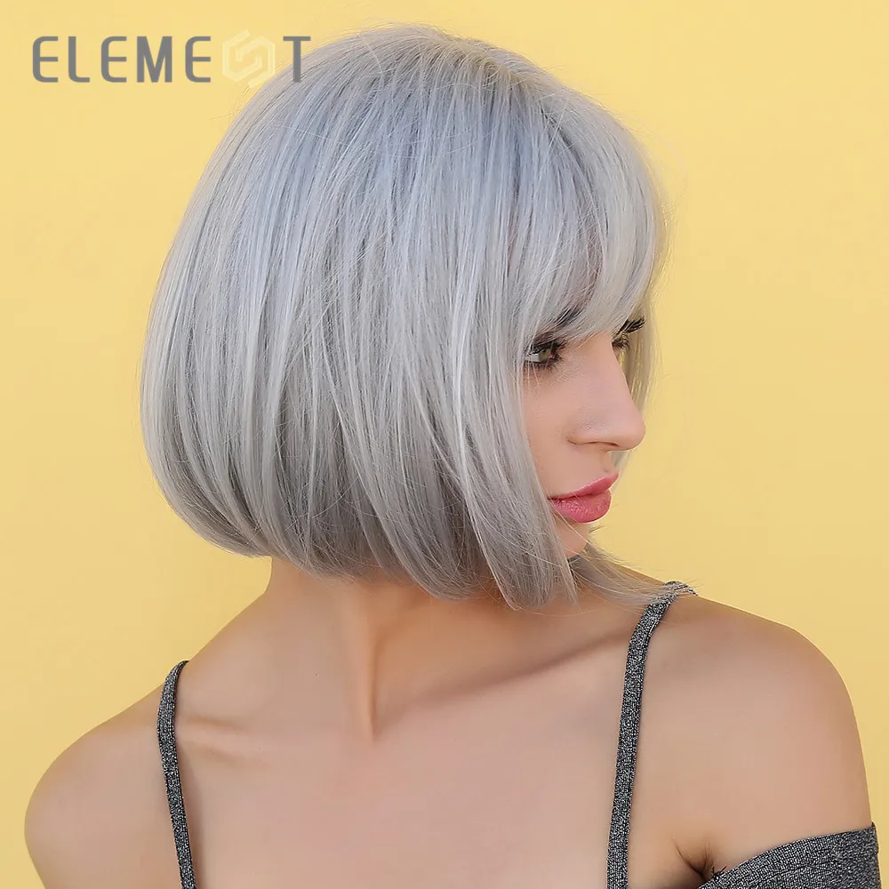 Парик для косплея Боб Element синтетический, с челкой, 14 дюймов, короткие прямые вечерние парики пепельного, серебристого, серого, розового, коричневого цветов для чернокожих и белых женщин