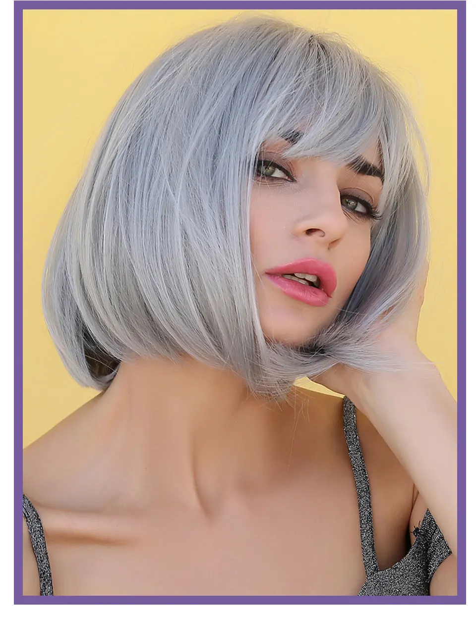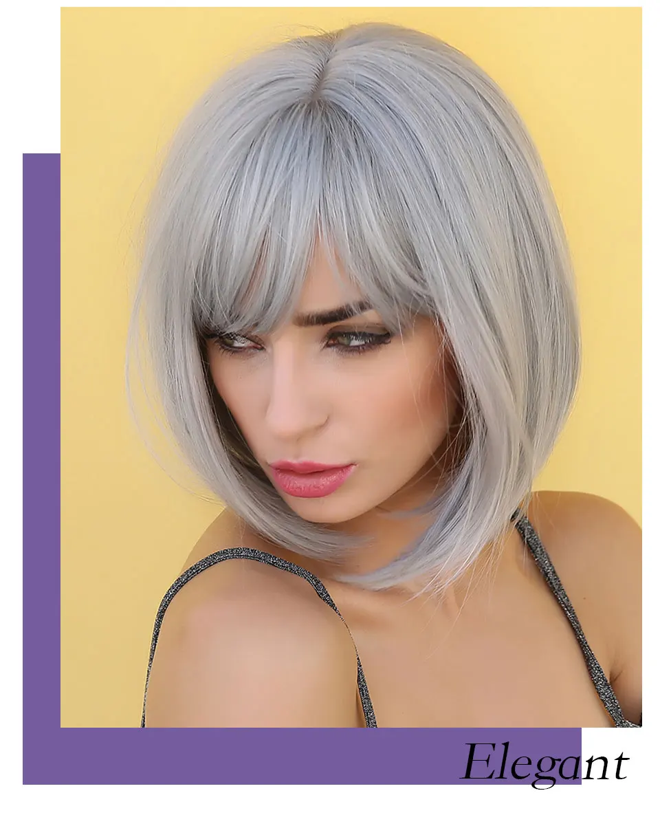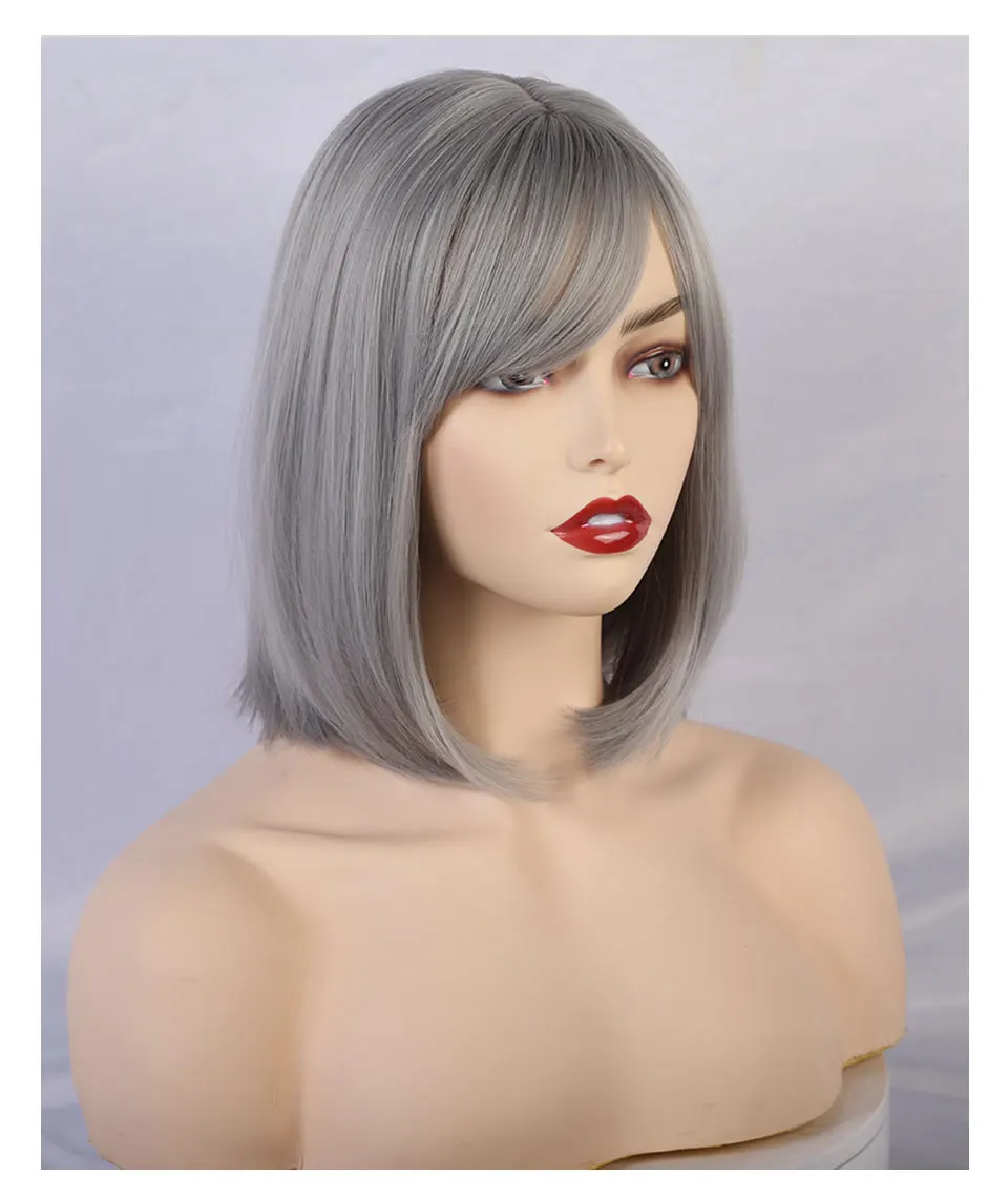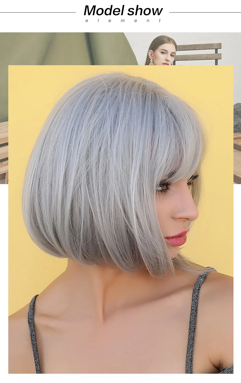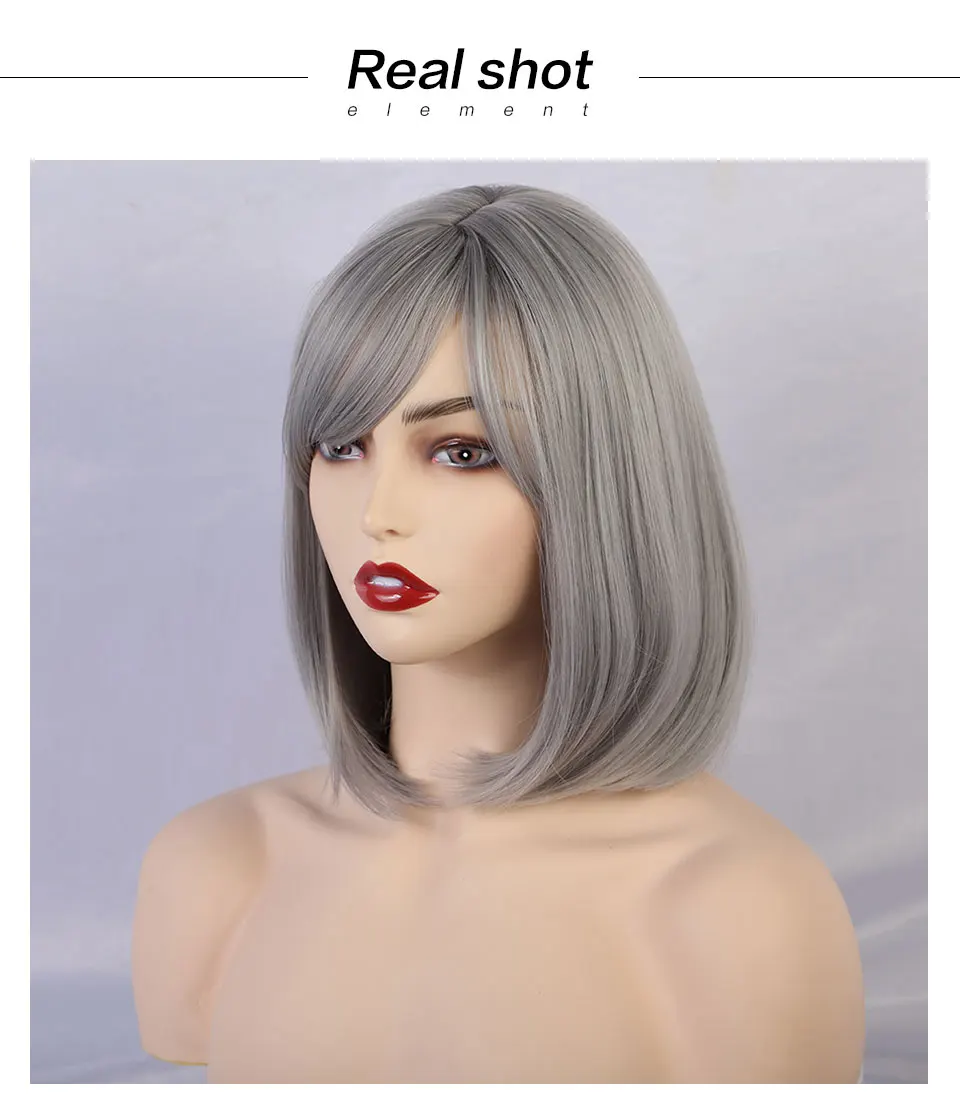 Парик для косплея Боб Element синтетический, с челкой, 14 дюймов, короткие прямые вечерние парики пепельного, серебристого, серого, розового, коричневого цветов для чернокожих и белых женщин
