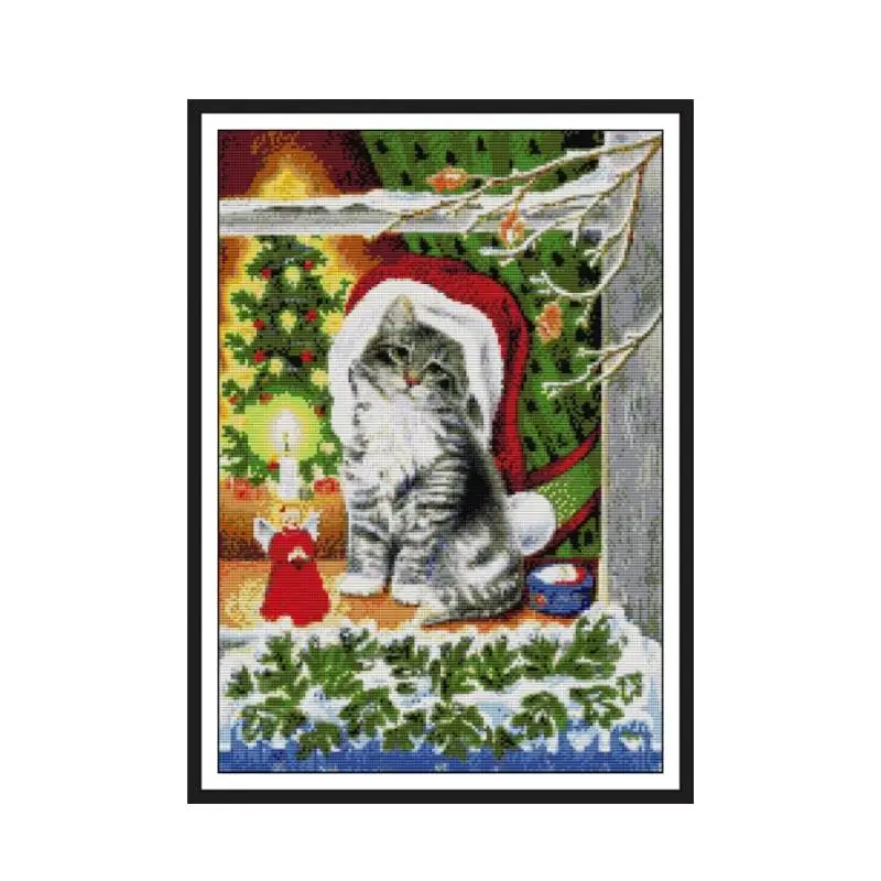 Вышивка крестиком Joy Sunday, картины с изображением рождественских кошек, вышивка с изображением животных, Декор для дома, вышивка крестиком