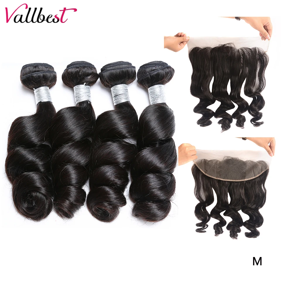 Vallbest свободные волнистые пряди с фронтальным бразильским плетением волос пряди человеческих волос 4 пряди от уха до уха кружевные фронтальные волосы Remy